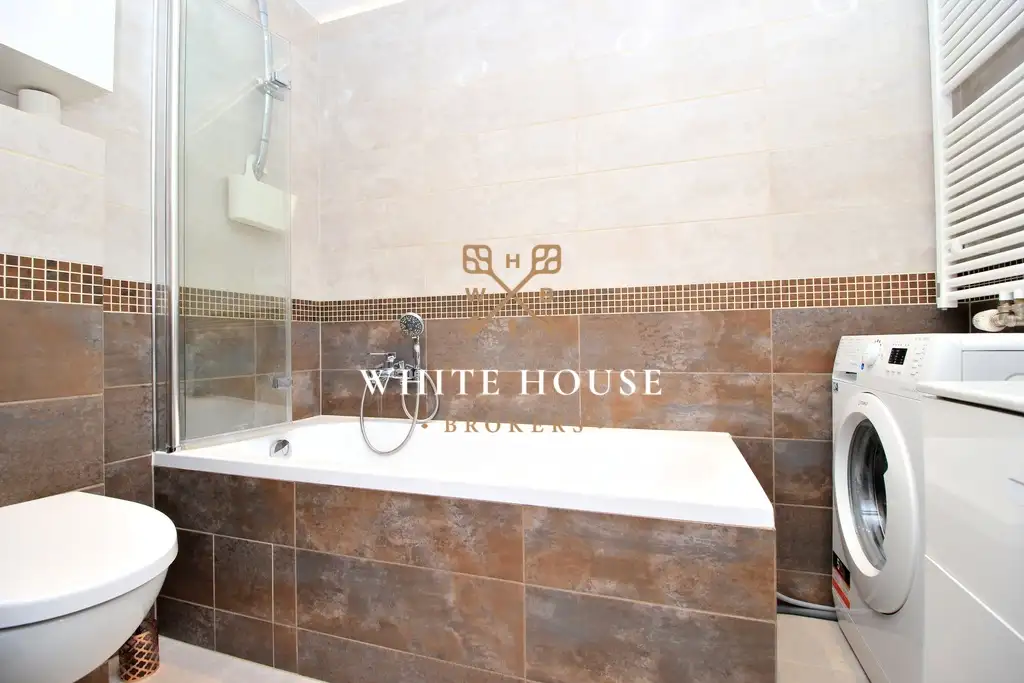 - łazienki wyposażonej w wannę (wyposażenie: pralka).