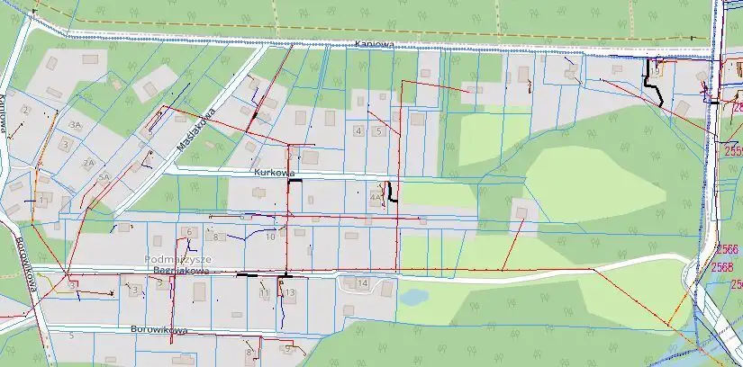 W tej części miejscowości Podmarzysze, zabudowane działki mają własne studnie oraz szamba lub oczyszczalnie.