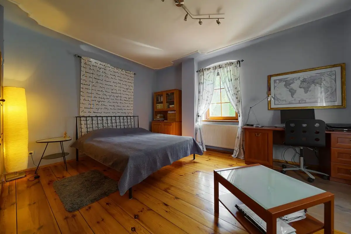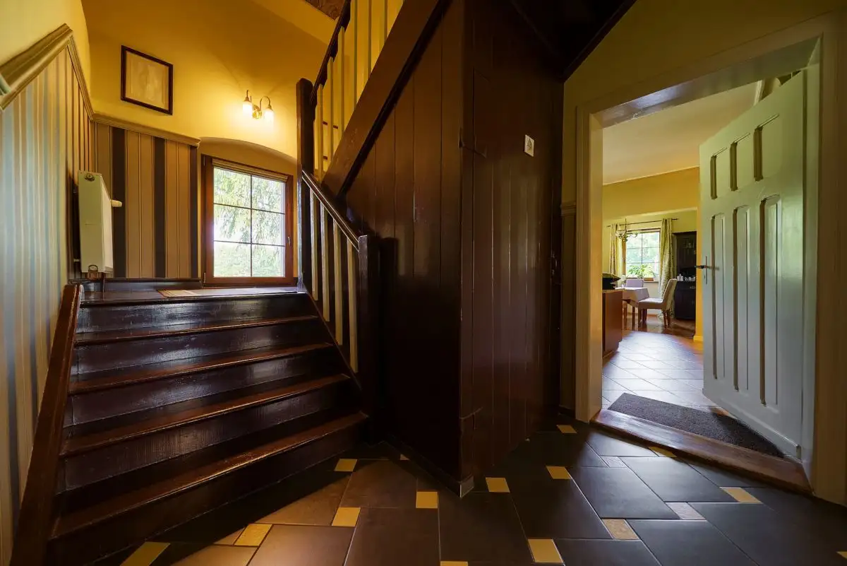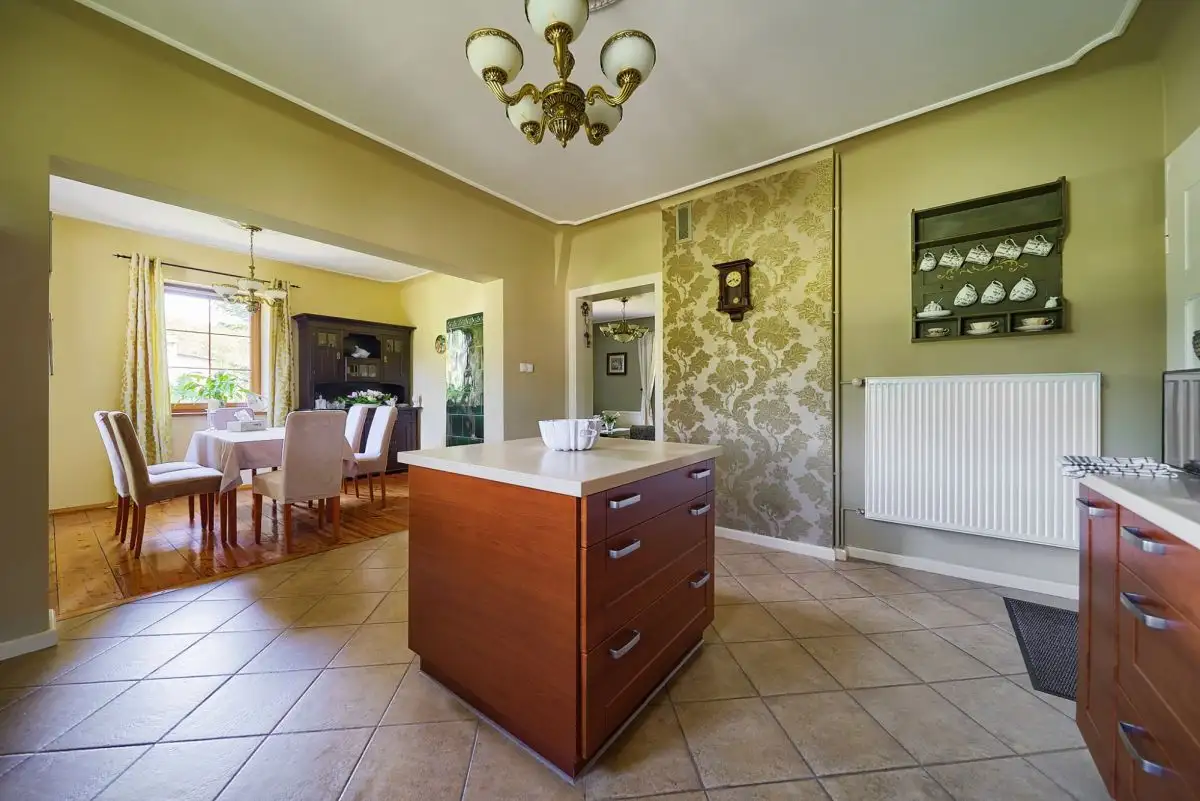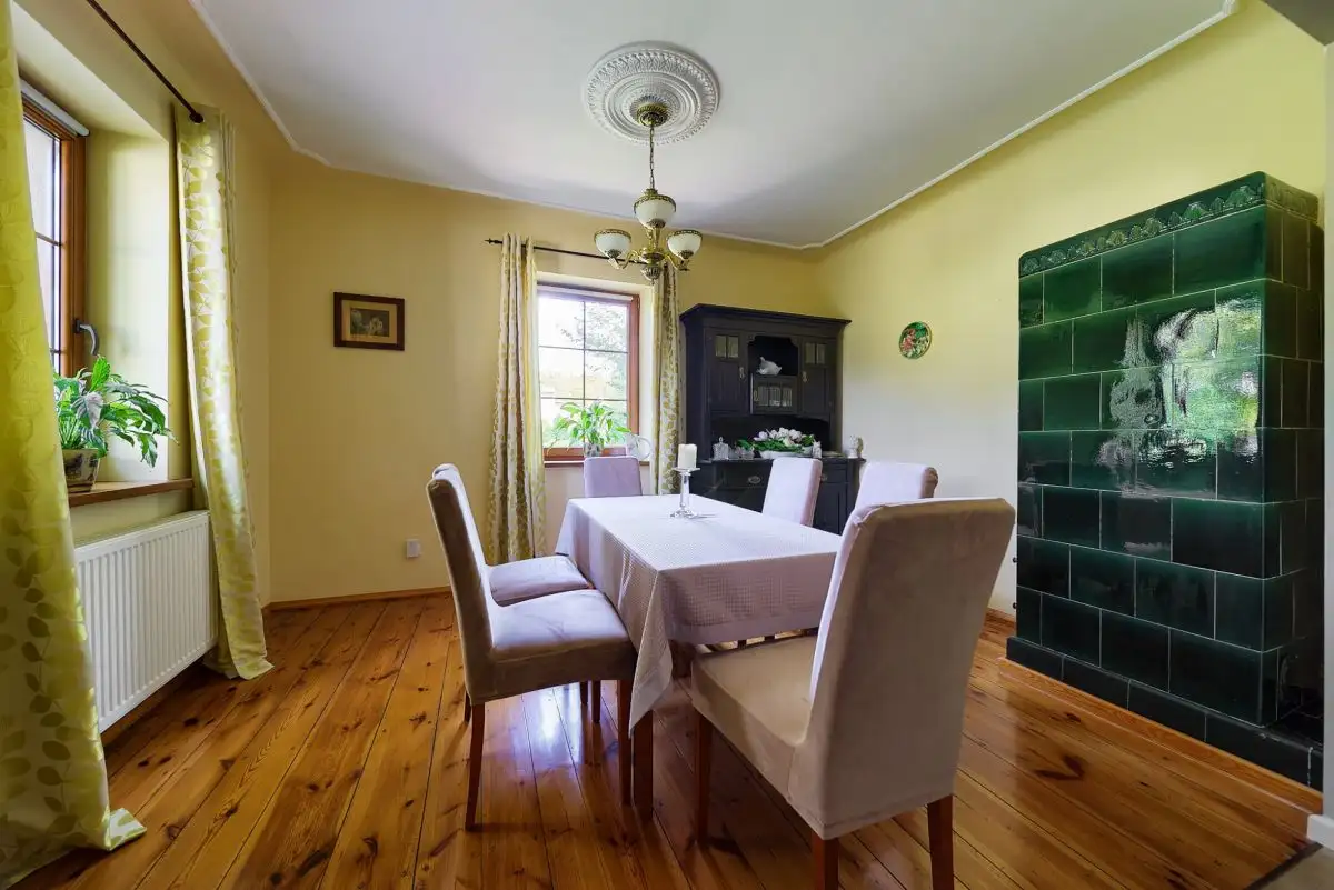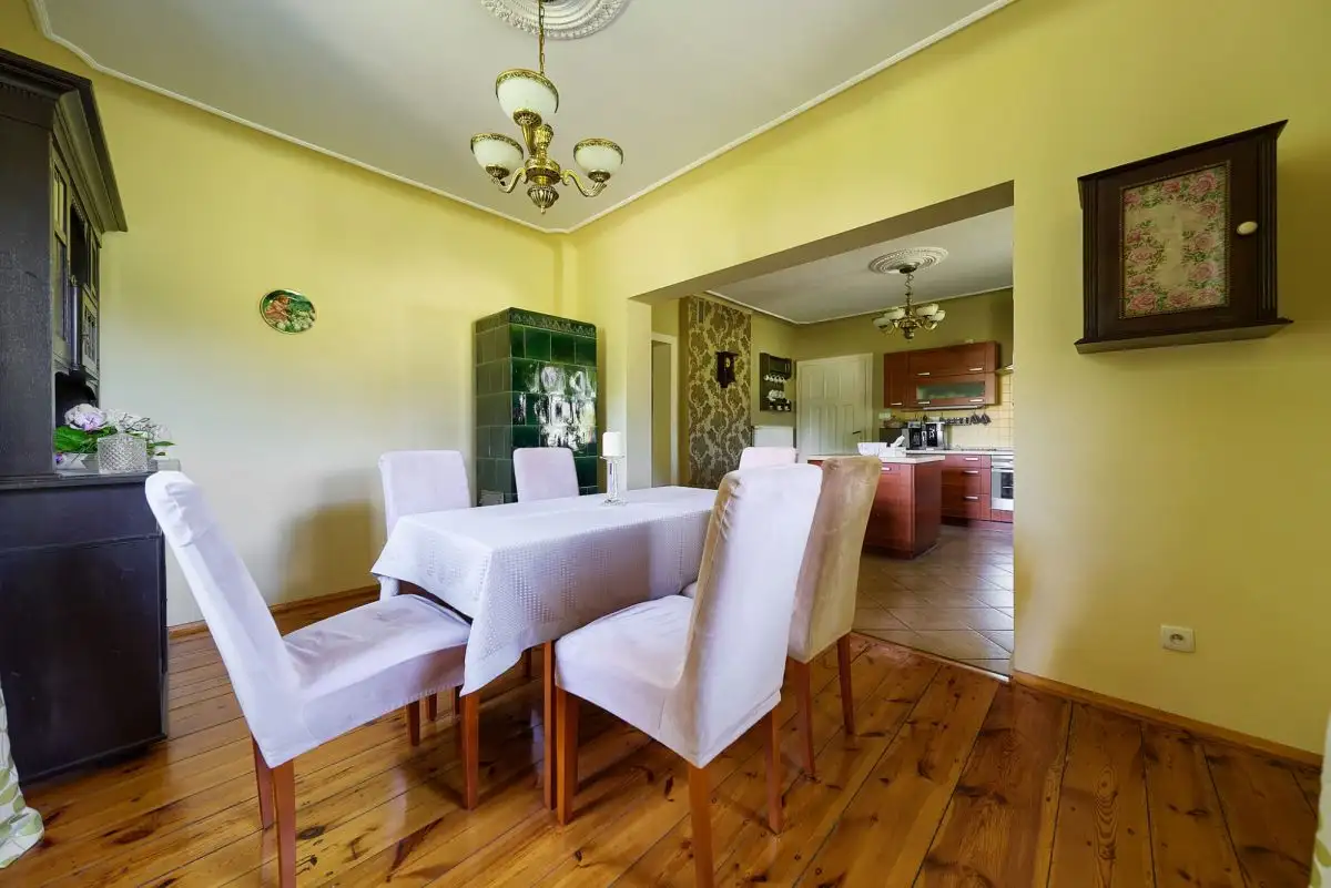 Dom z Duszą: Stuletnia Tradycja, Nowoczesne OdrodzenieTa wyjątkowa posiadłość jest przykładem szacunku do przeszłości połączonego z nowoczesnymi rozwiązaniami. Pierwotnie wzniesiony około sto lat temu, dom został starannie i całkowicie odbudowany w 2008 roku, dzięki czemu dziś jego historyczny charakter idealnie współgra z wysokim standardem wykonania i współczesnymi technologiami. Budynek oferuje około 160 mkw starannie zaaranżowanej powierzchni użytkowej, rozłożonej na dwóch kondygnacjach (po 80 mkw na parterze i piętrze). Dodatkową przestrzeń zapewnia pełne podpiwniczenie oraz nieużytkowy strych, idealny do przechowywania.