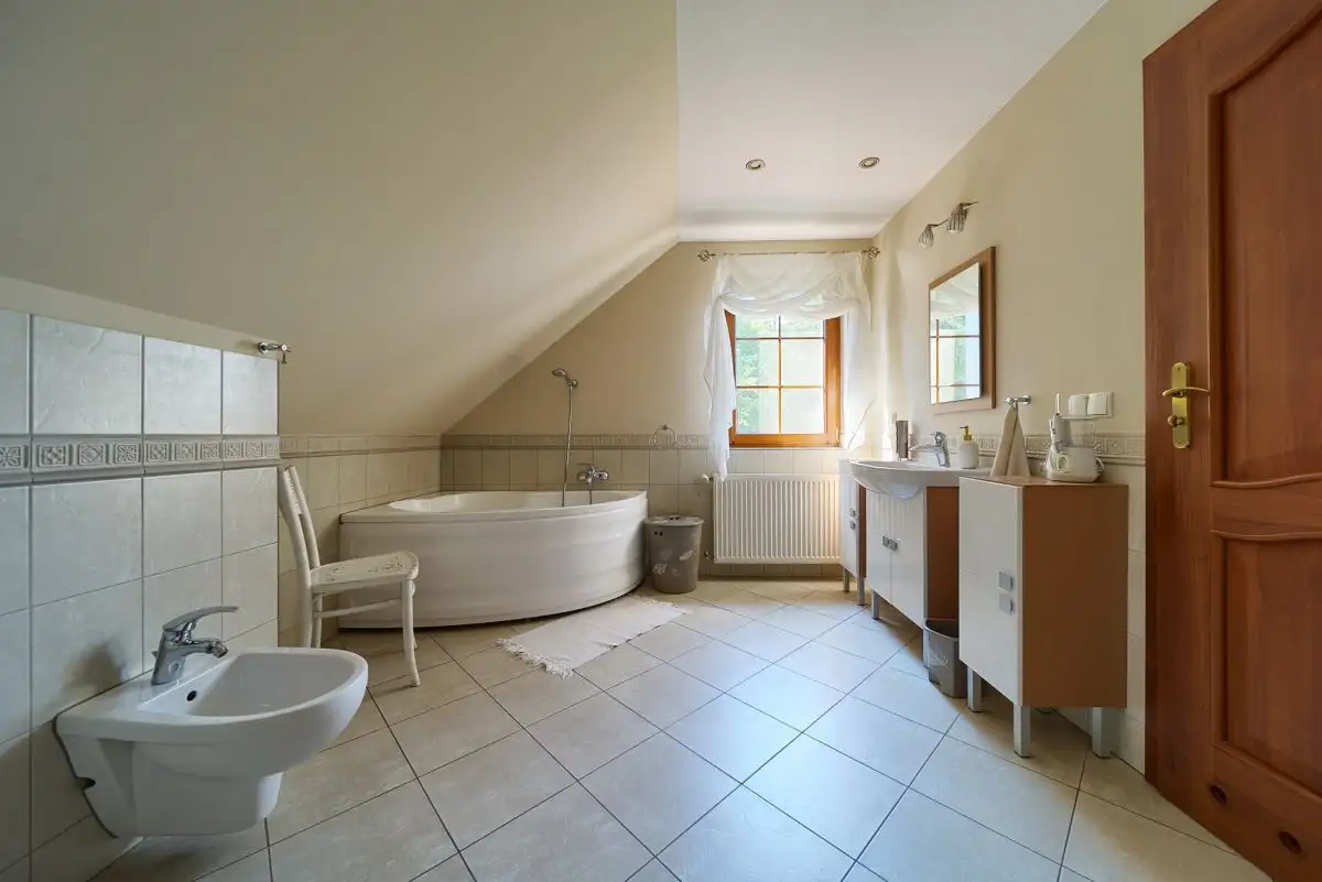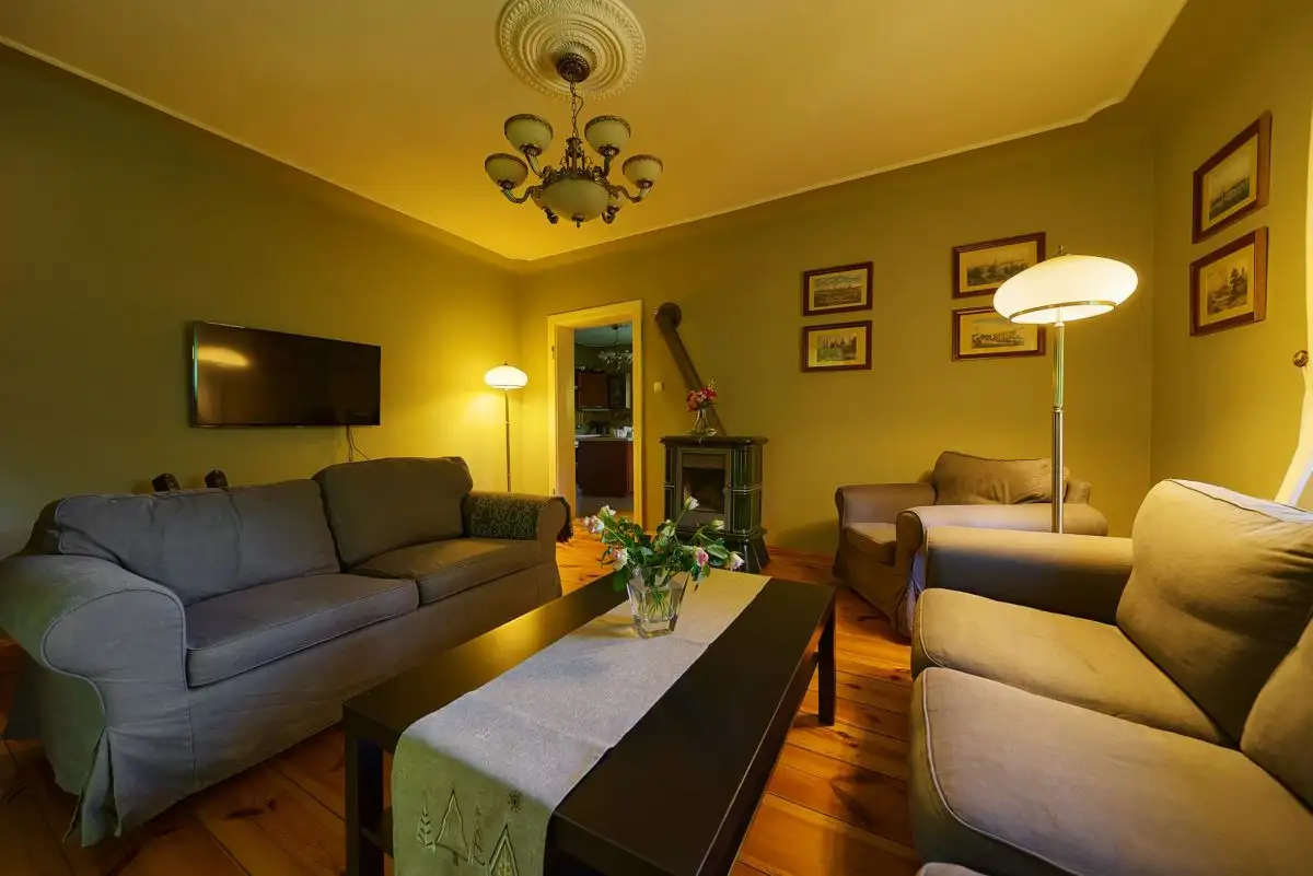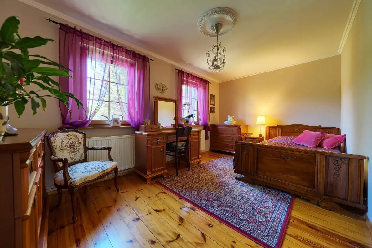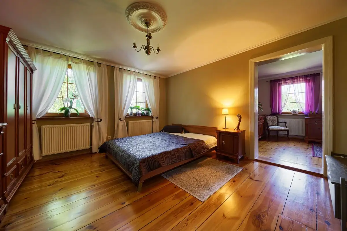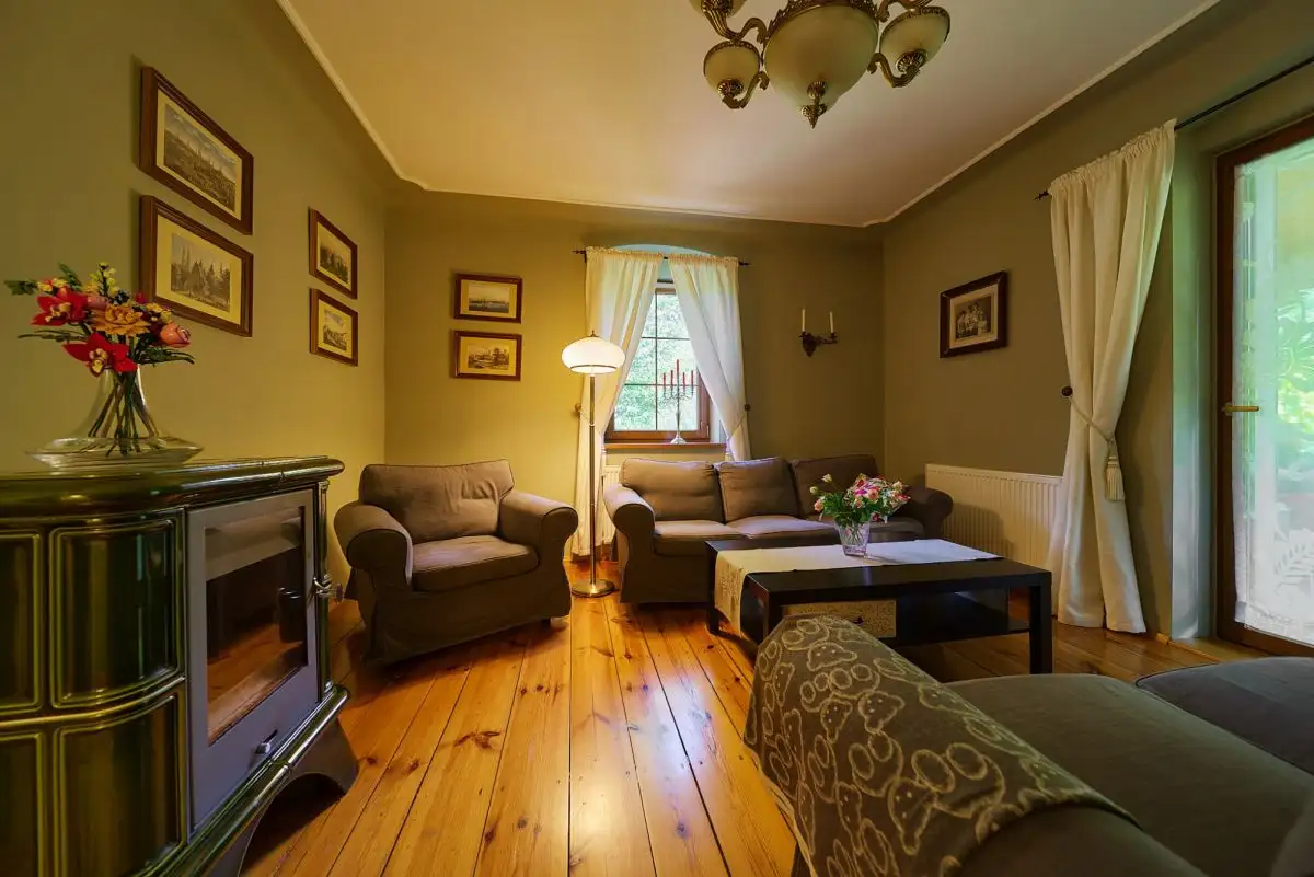 Dom z Duszą: Stuletnia Tradycja, Nowoczesne OdrodzenieTa wyjątkowa posiadłość jest przykładem szacunku do przeszłości połączonego z nowoczesnymi rozwiązaniami. Pierwotnie wzniesiony około sto lat temu, dom został starannie i całkowicie odbudowany w 2008 roku, dzięki czemu dziś jego historyczny charakter idealnie współgra z wysokim standardem wykonania i współczesnymi technologiami. Budynek oferuje około 160 mkw starannie zaaranżowanej powierzchni użytkowej, rozłożonej na dwóch kondygnacjach (po 80 mkw na parterze i piętrze). Dodatkową przestrzeń zapewnia pełne podpiwniczenie oraz nieużytkowy strych, idealny do przechowywania.