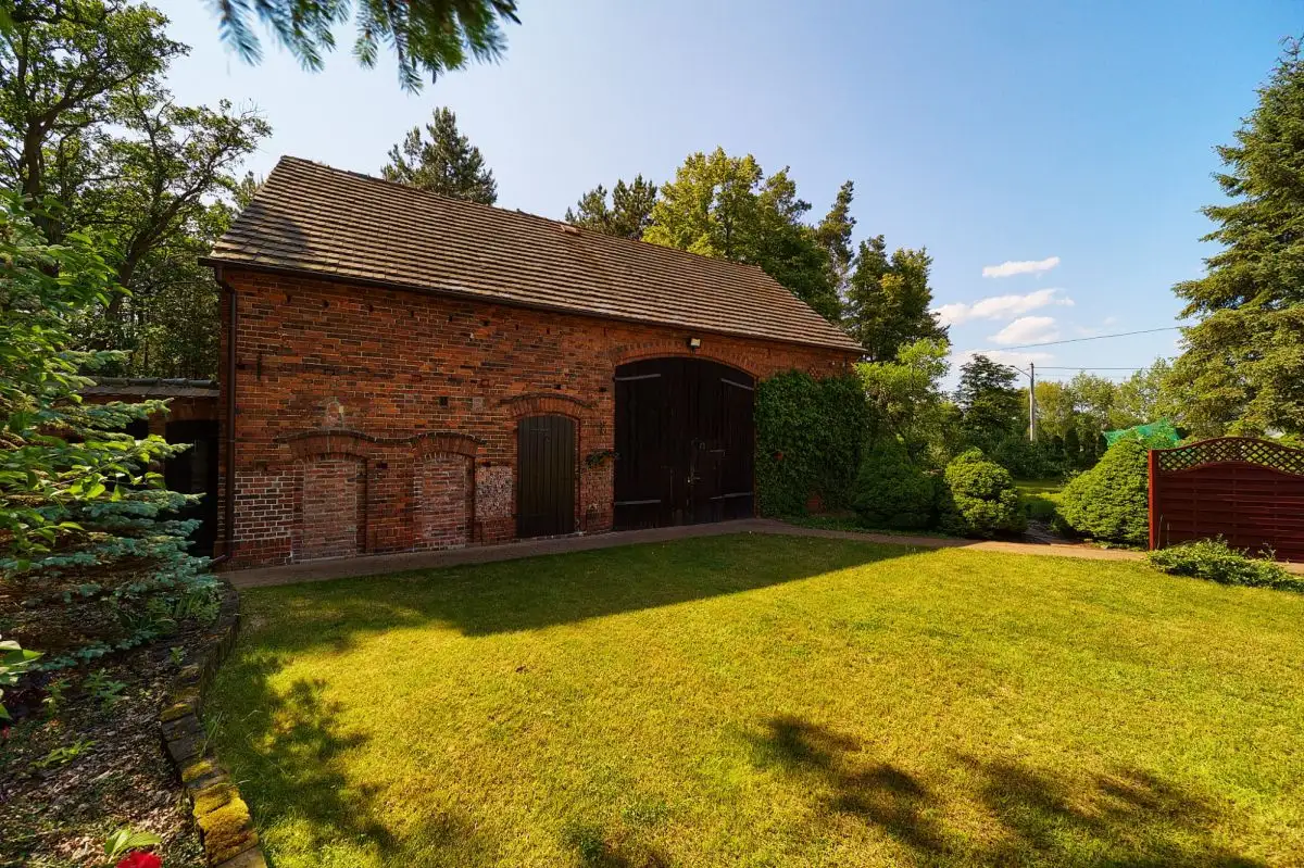 Potencjał Kryjący się w Tradycji: Budynek Gospodarczy z MożliwościamiNa terenie posesji znajduje się również solidny, murowany budynek gospodarczy o powierzchni około 80 mkw, pochodzący z początku XX wieku. Został on funkcjonalnie podzielony na dwa duże pomieszczenia. Jedno z nich z powodzeniem pomieści dwa samochody, pełniąc rolę garażu, natomiast drugie stanowi doskonałą przestrzeń na warsztat, drewutnię, czy magazyn. Co istotne, budynek ten stwarza realną możliwość stworzenia pracowni dla artysty, gabinetu dla osoby wykonującej wolny zawód, czy nawet niezależnego mieszkania dla gości.