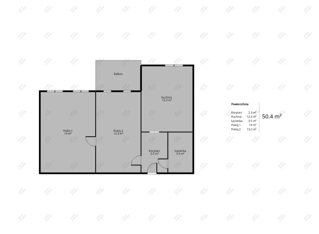 Układ pomieszczeń: Mieszkanie składa się z salonu z wyjściem na duży balkon, pokoju, osobnej dużej kuchni, łazienki i korytarza.