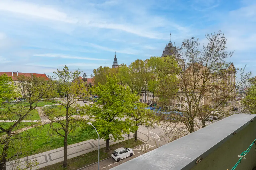 Dodatkowe udogodnienia: W mieszkaniu znajduje się duży balkon z widokiem na zieleń w Parku Żeromskiego i gmach Muzeum Narodowego.
