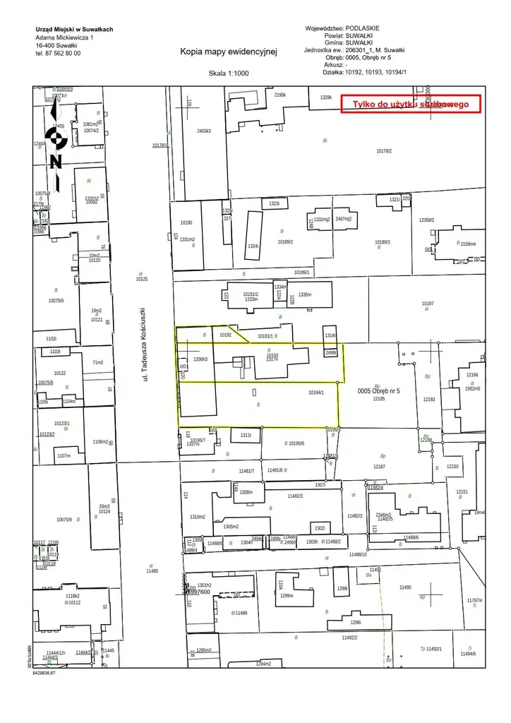 w Warszawie. Garaż posiada powierzchnię zabudowy 18 m². Na fragmencie działki nr 10193 znajdują się nakłady obce w postaci części budynku garażu. Na działce nr 10192 zlokalizowane jest przyłącze wodociągowe, kanalizacji sanitarnej i elektroenergetyczne niskiego napięcia, na działce nr 10193 znajduje się przyłącze kanalizacji deszczowej, kanalizacji sanitarnej oraz przewód oświetleniowy, natomiast na działce nr 10194/1 zlokalizowana jest sieć i przyłącze kanalizacji deszczowej, przewód oświetleniowy oraz przyłącze ciepłownicze. Nabywca zobowiązany będzie do nieodpłatnego znoszenia tych sieci i przyłączy oraz nieodpłatnego udostępniania wejścia na grunt w przypadku ich awarii bądź konserwacji. Ponadto Nabywca będzie zobowiązany do ustanowienia nieodpłatnej służebności przesyłu na czas nieoznaczony na rzecz właściciela sieci ciepłowniczej – Przedsiębiorstwa Energetyki Cieplnej w Suwałkach Spółki z o.o., polegającej na znoszeniu sieci cieplnej, a w tym na prawie swobodnego dostępu - dojścia i dojazdu, tj. korzystania przez PEC w Suwałkach Sp. z o.o. z nieruchomości wyżej opisanej, oznaczonej nr geodezyjnym 10194/1 objętej księgą wieczystą SU1S/00002800/5, w celu naprawy, remontu, konserwacji i modernizacji oraz rozbudowy istniejących na nieruchomości urządzeń służących do przesyłu energii cieplnej. Zobowiązany będzie również do powstrzymania się od działań, które uniemożliwiłyby dostęp do urządzeń przesyłowych, w szczególności powstrzymywania się od dokonywania w odległości 1,5 m od sieci ciepłowniczej jakichkolwiek nasadzeń drzew i krzewów głęboko korzeniących się oraz lokalizowania obiektów w sposób trwale związany z gruntem, jak również innych działań lub zaniechań, które mogłyby spowodować uszkodzenie urządzeń przesyłowych. W przypadku kolidowania sieci z nową inwestycją, nabywca dokona jej przełożenia na wniosek i koszt własny za zgodą właściciela sieci. Działki nr 10192, 10193 i 10194/1 zgodnie z miejscowym planem zagospodarowania przestrzennego zawierają się w granicach terenów oznaczonych na rysunku planu symbolem 14U – wyznaczającego tereny zabudowy usługowej. Dodatkowo działki nr 10193 i 10194/1 w niewielkiej części zawierają się w granicach terenów oznaczonych na rysunku planu symbolem 4KD – linie rozgraniczające wyznaczające pas drogi publicznej klasy „L”. Szczegółowe warunki zabudowy zawarte są w miejscowym planie zagospodarowania przestrzennego terenu ograniczonego ulicami: T. Kościuszki, gen. J. Dwernickiego, T. Noniewicza oraz od strony południowej granicami działek 11505/1, 11505/2 i 11506 w Suwałkach zatwierdzonym Uchwałą Nr XLIX/550/06 Rady Miejskiej w Suwałkach z dnia 28.06.2006 roku. Działki objęte są strefą ochrony konserwatorskiej. Nieruchomość przeznaczona jest do sprzedaży w drodze przetargu ustnego nieograniczonego.