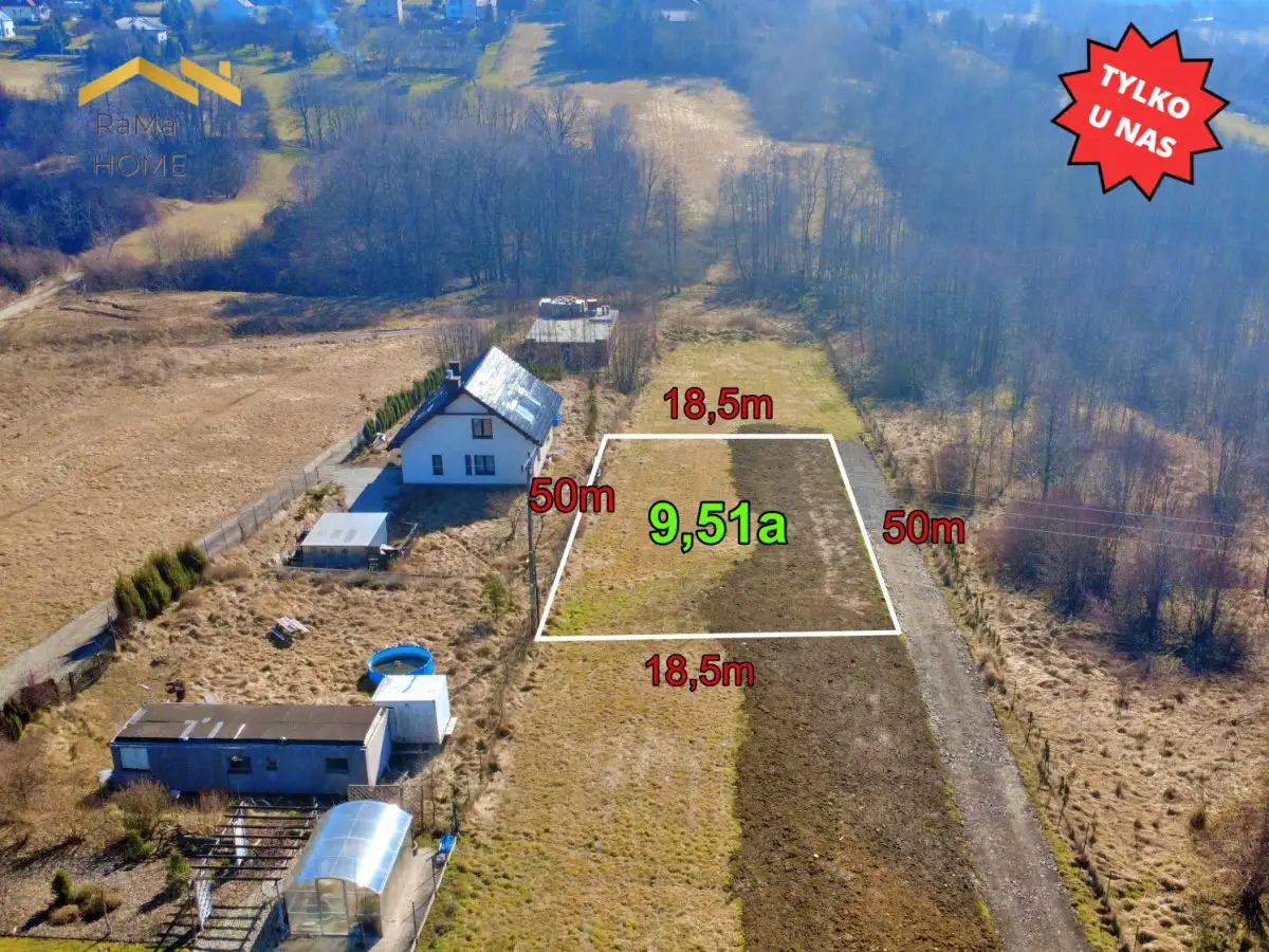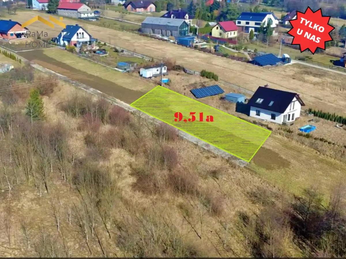 Działka budowana 9,51a - 6 min. od WieliczkiOferujemy do sprzedaży działkę budowlaną o regularnych kształtach o wymiarach