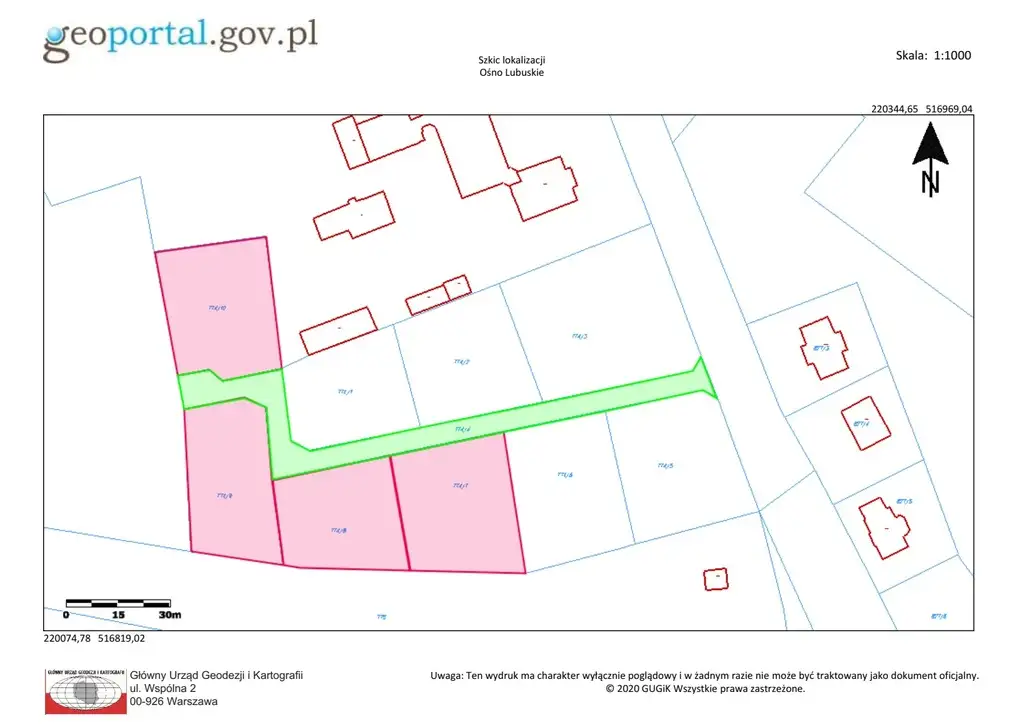 Zgodnie z decyzją nr 9/2013 Burmistrza Miasta i Gminy Ośno Lubuskie z dnia 27 marca 2013 r., znak: BP.6730.62.2012 o warunkach zabudowy teren przeznaczony jest dla inwestycji polegającej na budowie dziewięciu budynków mieszkalnych jednorodzinnych na wydzielonych działkach powstałych w obrębie działki ewidencyjnej nr 774.