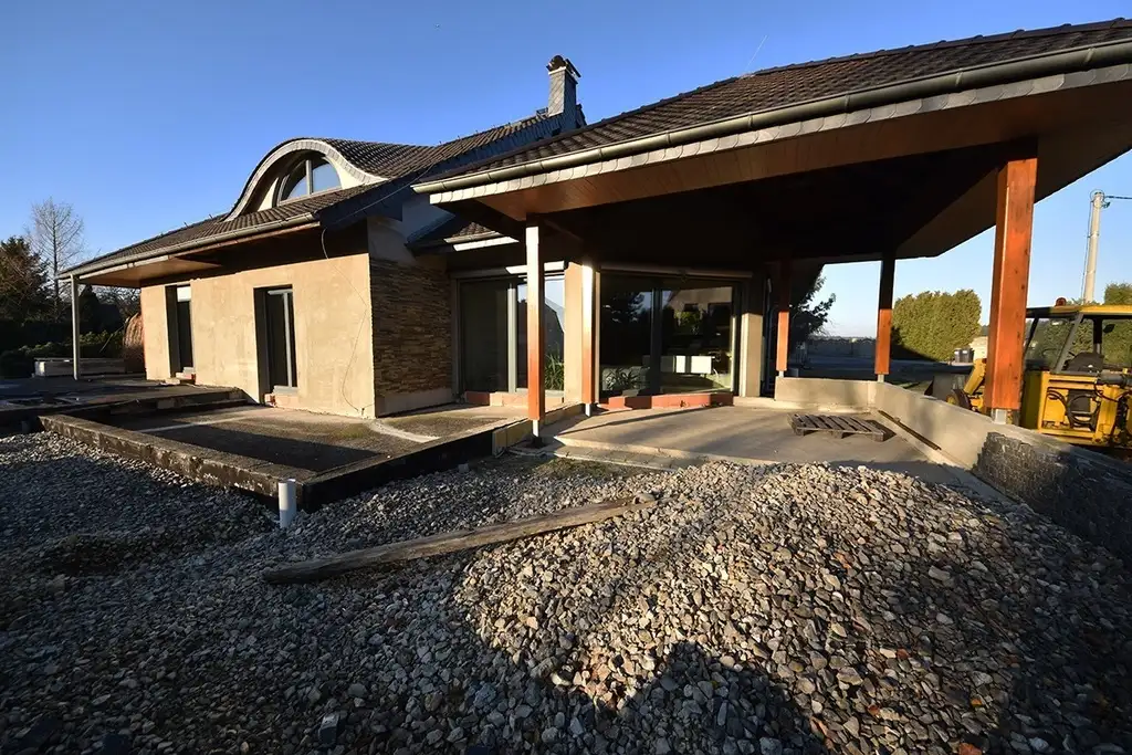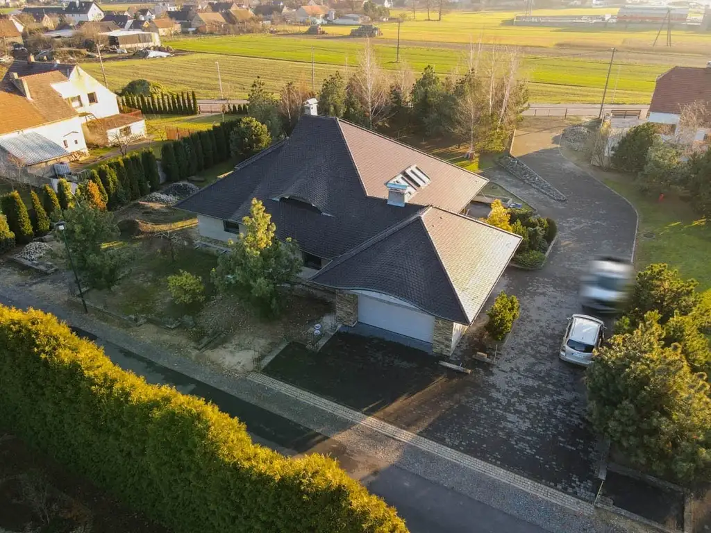 Dom wybudowany w technologii tradycyjnej, ściany zewnętrzne ceramiczne Porotherm o gr. 38 cm ocieplone styropianem o gr. 12 cm, tynk zewnętrzny mineralny na podkładzie cementowo - wapiennym. Ściany wewnętrzne: cegła Porotherm, częściowo otynkowane. Stropy gęstożebrowe typu Teriva wylewane betonem. Wszystkie okna dwuszybowe, żaluzje zewnętrzne. Dach – drewniany, kryty dachówką ceramiczną, instalacja odgromowa na dachu. Jedyna taka nieruchomość wybudowana z projektu autorskiego ze starannie wykonanych materiałów budowlano-wykończeniowych, z uwzględnieniem wygody i funkcjonalności dla rodziny.