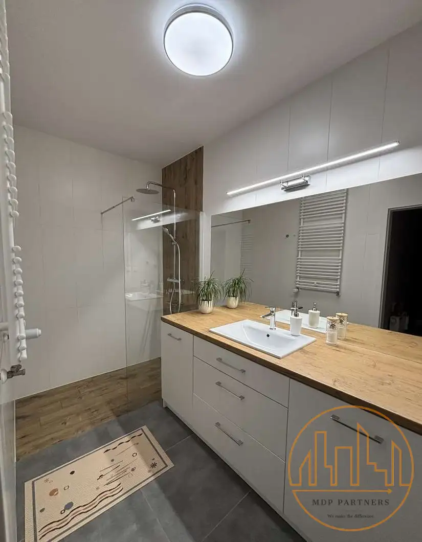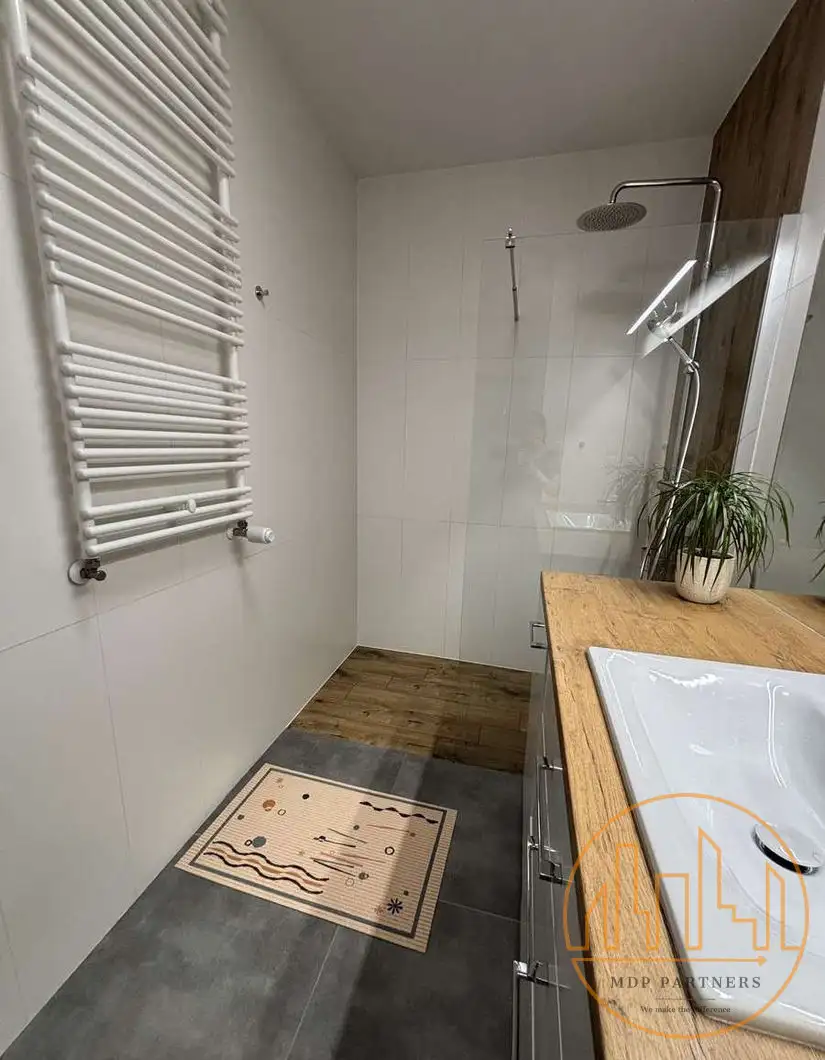 Mieszkanie zostało wykończone w wysokim standardzie, co gwarantuje doskonałą jakość materiałów oraz dbałość o każdy detal.