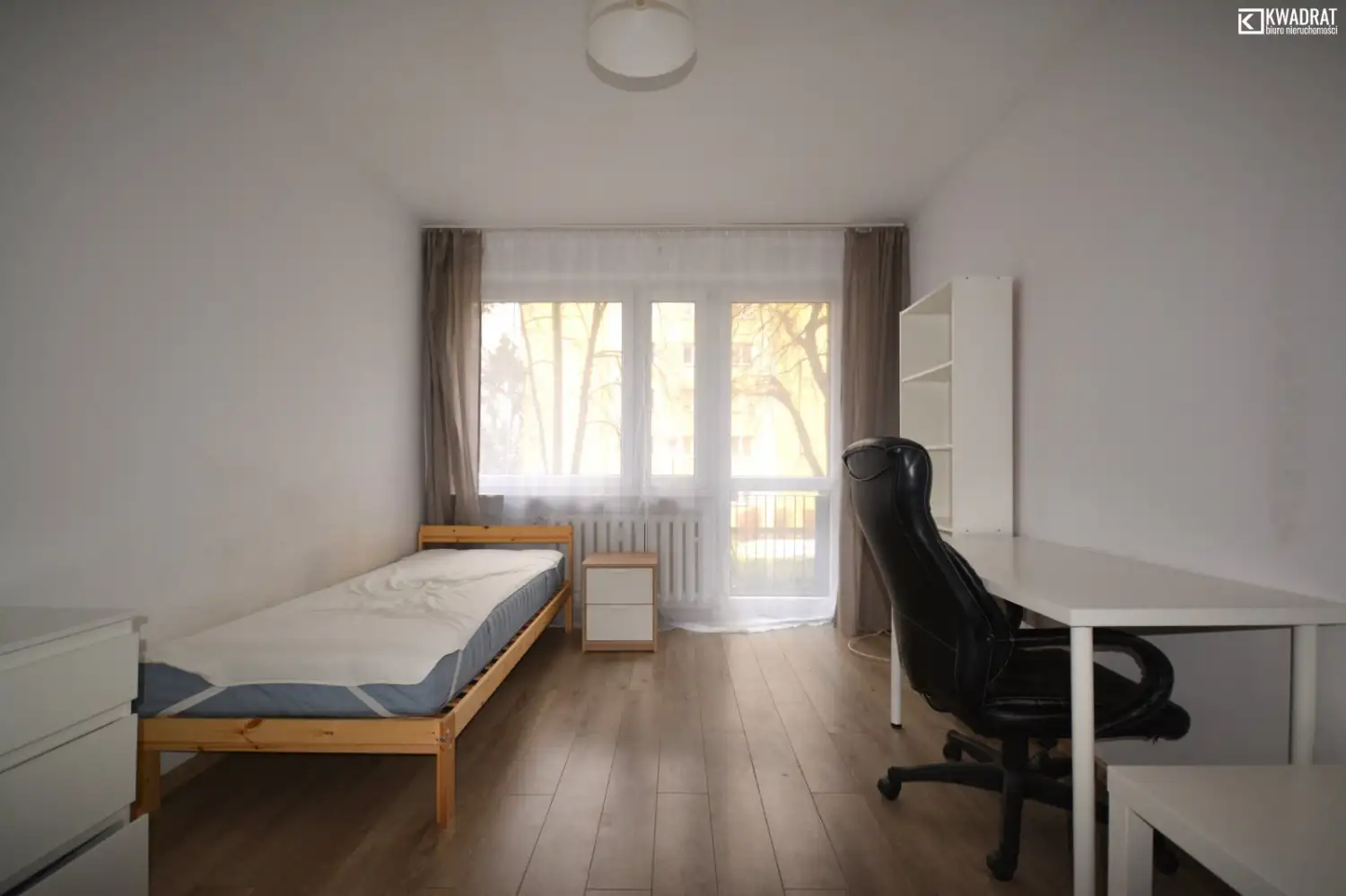Okna PCV z ekspozycją na PN i PD. Na podłogach panele i terakota.