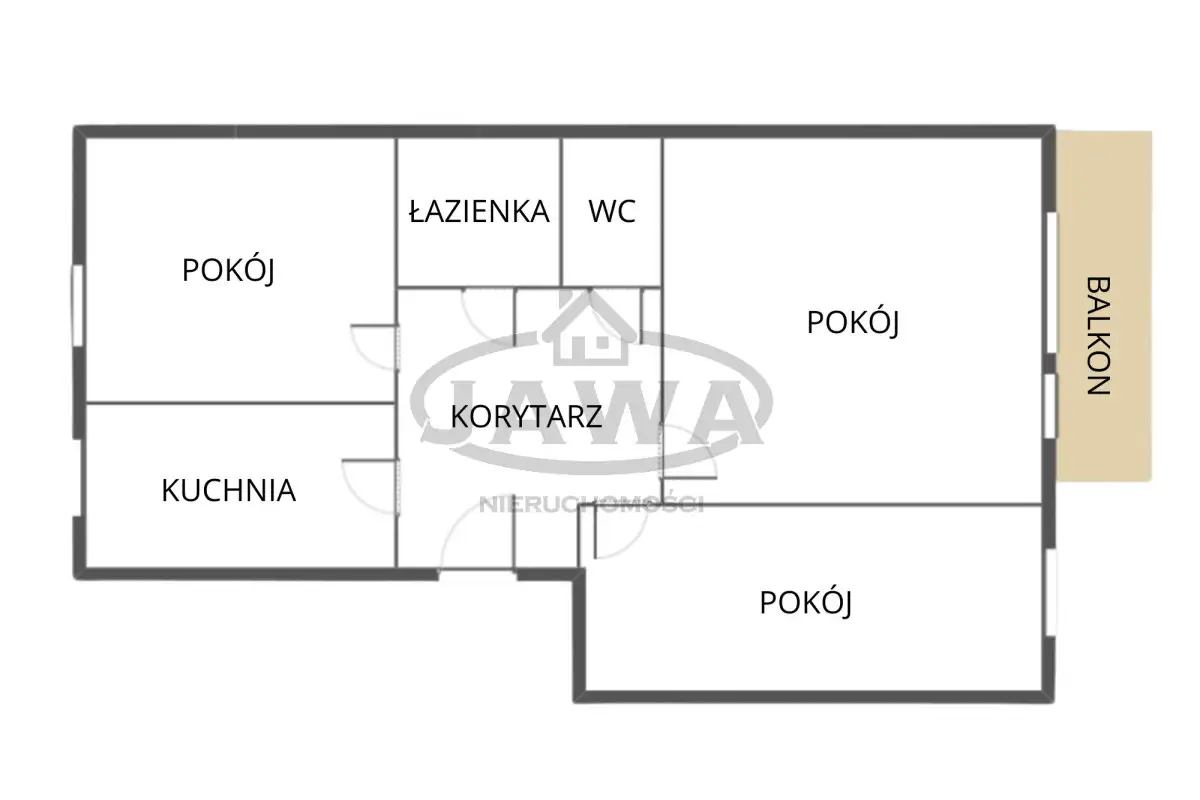 • Układ: 3 niezależne pokoje (o pow.19m², 12,5m², 8,5m²) osobna kuchnia (o pow.7m²), łazienka (3m²) i WC (1m²);