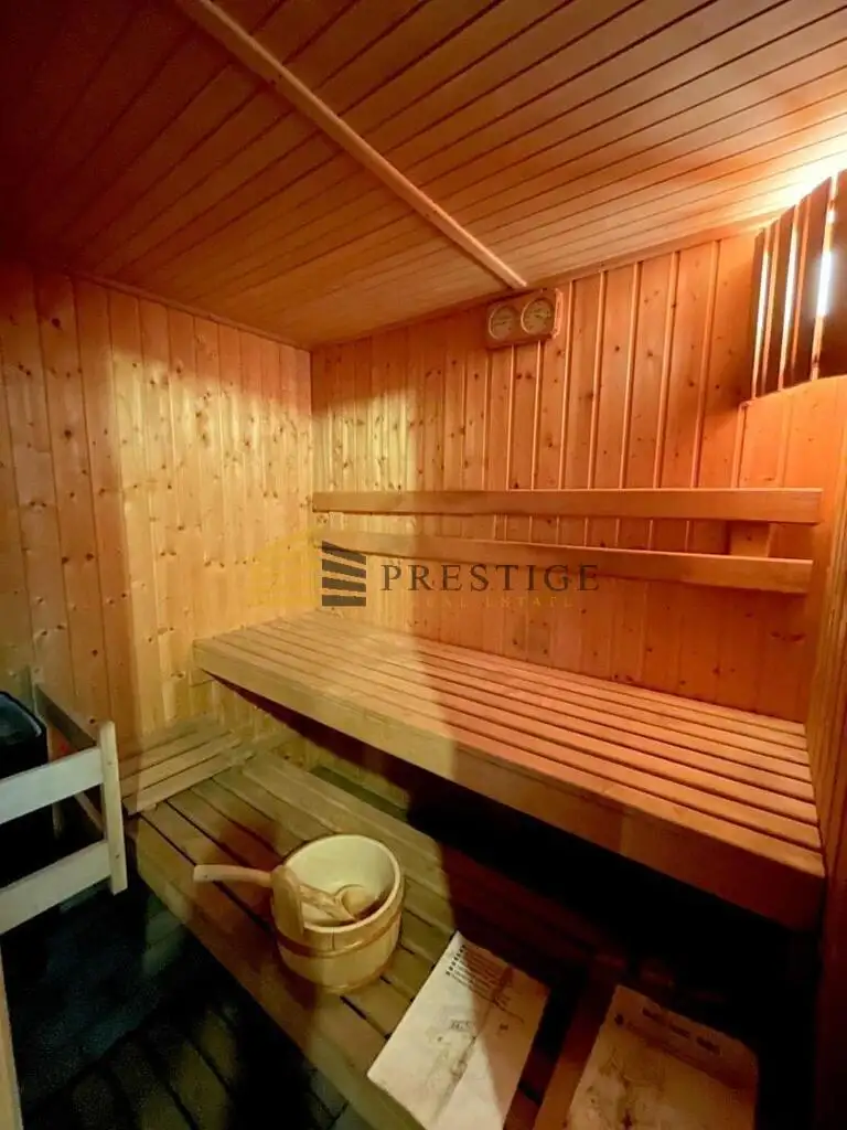 Duże, około 50-metrowe pomieszczenie rekreacyjne Sauna Łazienka Pralnia Kotłownia Na terenie posesji znajduje się garaż wolnostojący na jeden samochód oraz wiata parkingowa na dwa auta.
