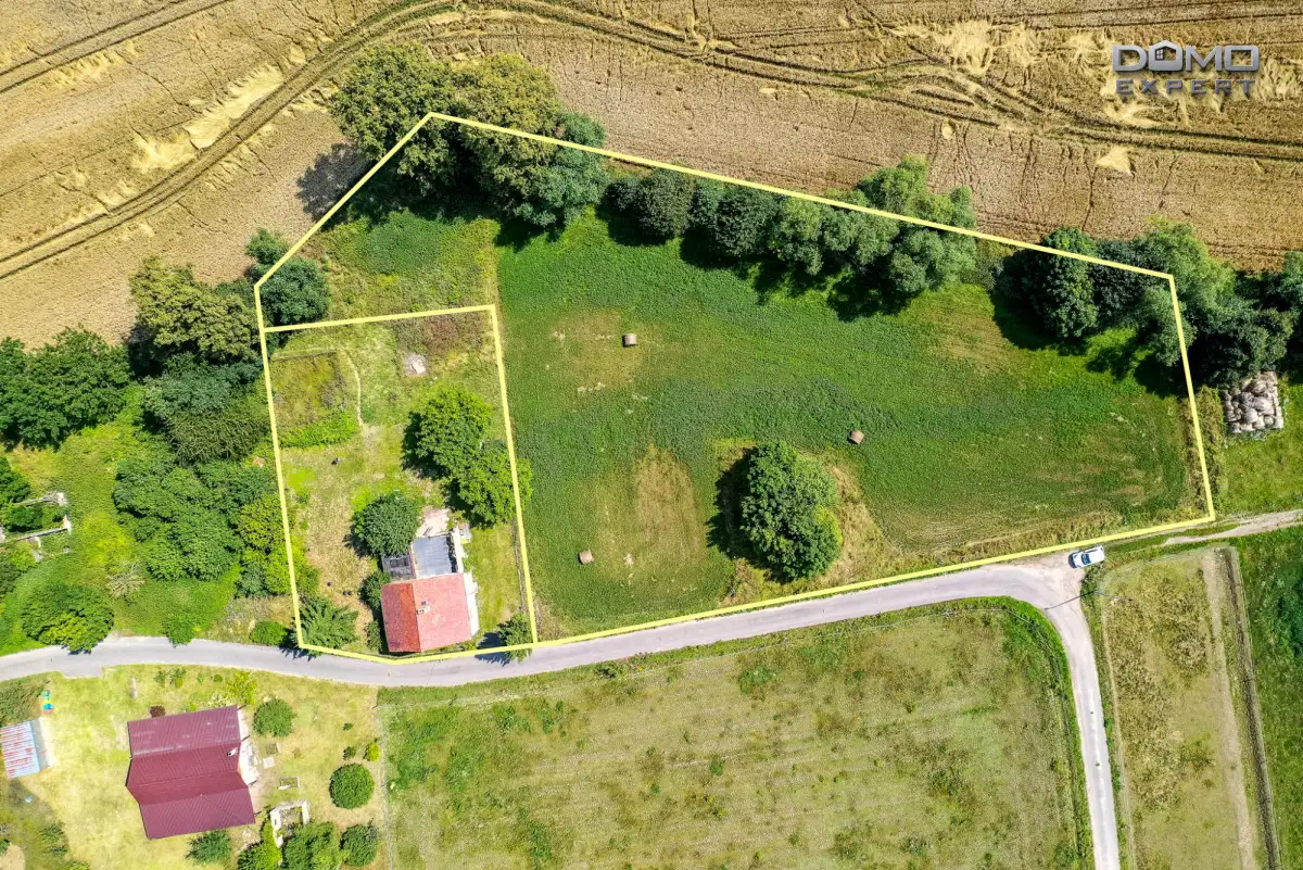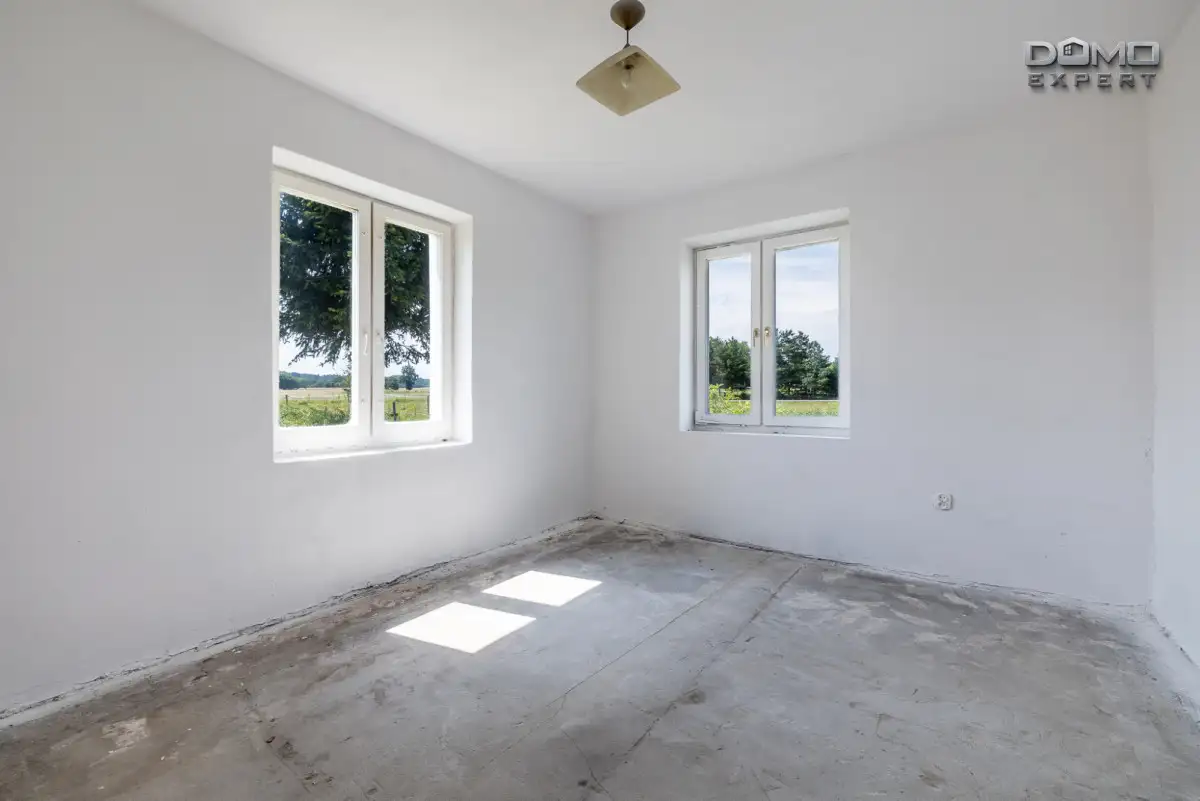 - Na terenie znajduje się budynek gospodarczy do remontu połączony z budynkiem mieszkalnym o powierzchni 40,00 m²