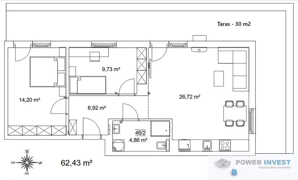 - narożnego tarasu 30m²