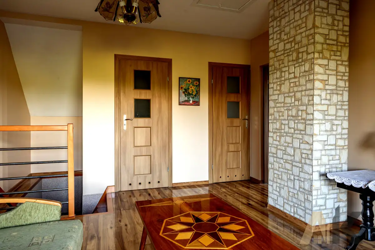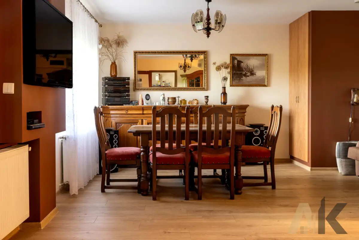 Na sprzedaż oferujemy zadbany dom jednorodzinny o powierzchni użytkowej 130 m², położony w malowniczej, zielonej okolicy. Budynek został wzniesiony w 1970 roku z pustaka, a w późniejszych latach przeszedł modernizacje, które dostosowały go do współczesnych standardów. Dach pokryty został trwałą, malowaną dachówką ceramiczno-betonową, co zapewnia wieloletnią ochronę przed warunkami atmosferycznymi. Dzięki nowoczesnym oknom PCV i drewnianym drzwiom wejściowym budynek cechuje się dobrą termoizolacją. Dodatkowym atutem są dwa balkony - klasyczny i w formie loggii - idealne do wypoczynku na świeżym powietrzu.