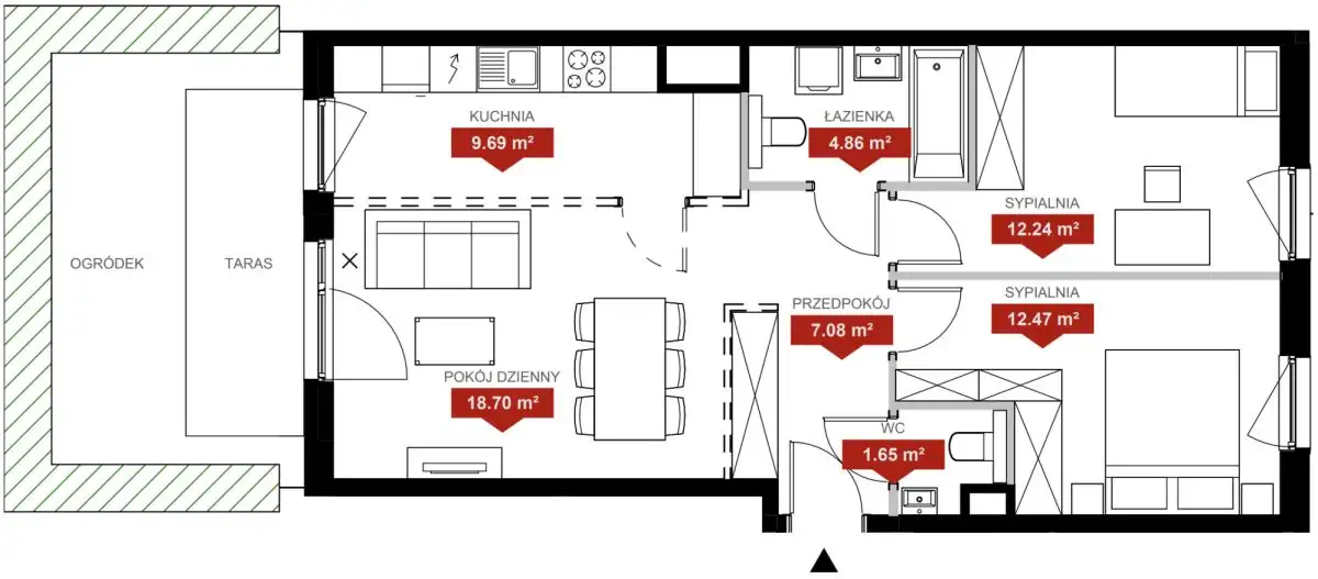 - kuchnia (możliwość wydzielenia) - 9,69 m²