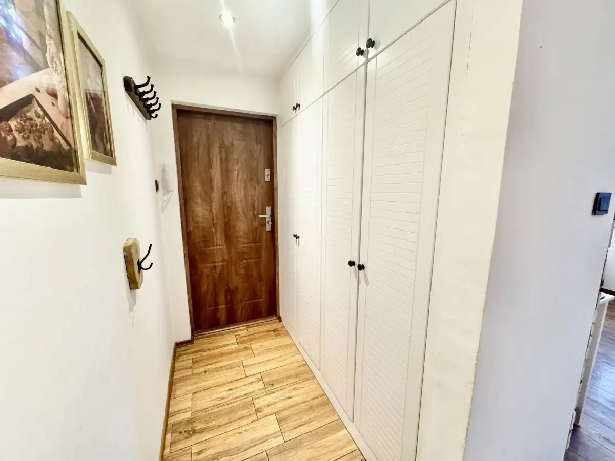 Mieszkanie składa się z przestronnego salonu połączonego z dużą kuchnią, ustawnej sypialni z wyjściem na zabudowany balkon, oddzielnych łazienki i WC oraz przedpokoju z dużą szafą w zabudowie. Dzięki dwustronnemu układowi mieszkanie jest jasne i dobrze doświetlone, a przestrzeń została zaprojektowana w sposób funkcjonalny, zapewniając wygodę codziennego życia. Do mieszkania przynależy piwnica, która zapewnia dodatkowe miejsce do przechowywania.