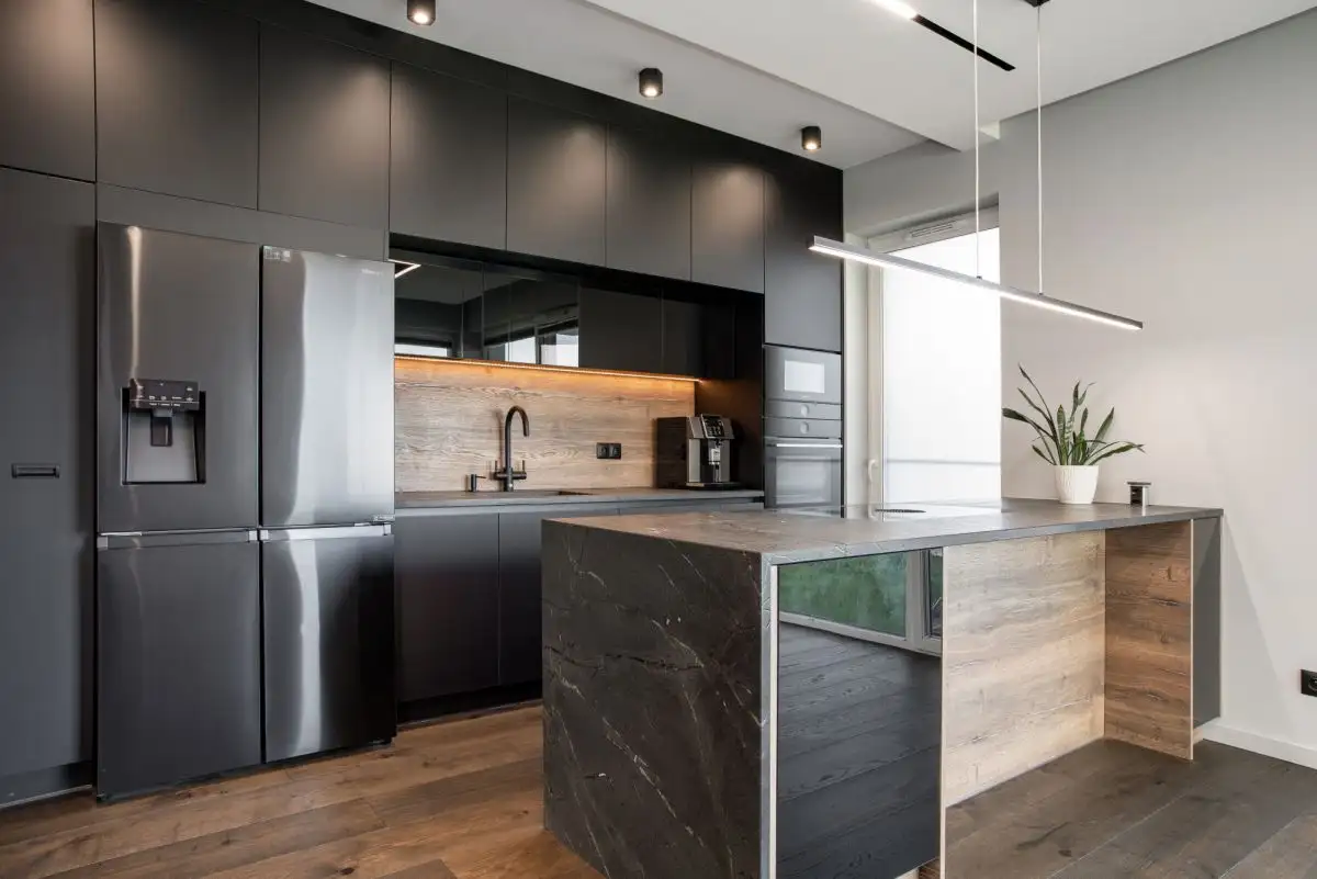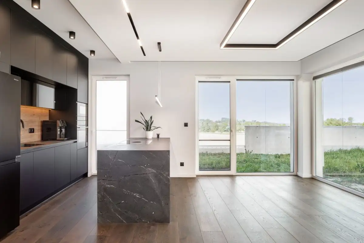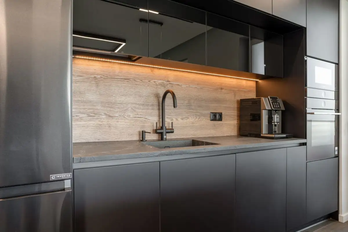 zabudowa kuchni z płytą Bora i ukrytą wentylacją