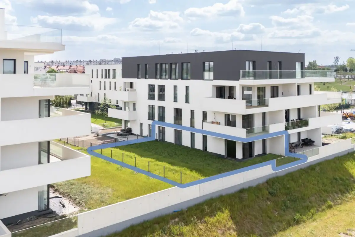 Powierzchnia mieszkania to 92,43 m². Jego ogromnym atutem jest przynależący ogród i taras o imponującej powierzchni 262,28 m² - przestrzeń porównywalna z działką przy domu jednorodzinnym.
