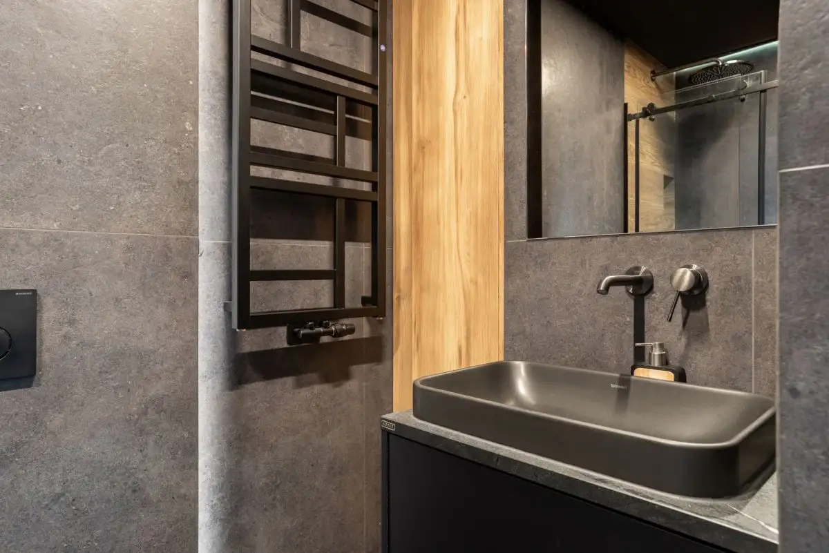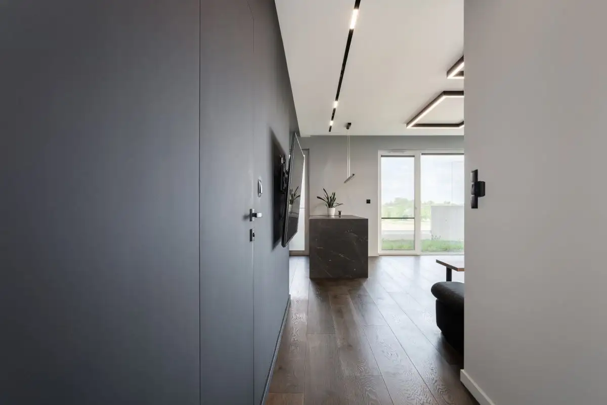 Apartament został wykończony z dbałością o każdy szczegół. Użyto materiałów wysokiej jakości, tworząc ponadczasowe, nowoczesne wnętrze z inteligentnymi rozwiązaniami, które zaskoczą nowego właściciela podczas prezentacji.