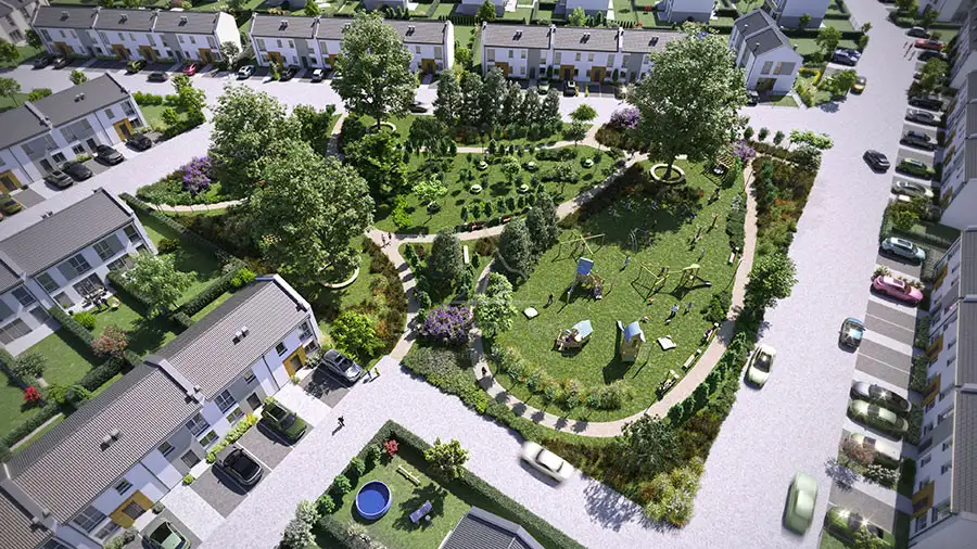 Inwestycja gwarantuje szereg udogodnień, dzięki którym mieszkańcy będą mogli odnaleźć ciszę i harmonię, bliskość natury, jak również sprawną komunikację z metropolią. Na terenie osiedla znajdzie się ponad 10 000m² na przeróżnego rodzaju punkty handlowo-usługowe, m.in. restauracja, kawiarnia, sklep spożywczy, drogeria oraz gabinety specjalistyczne. Większość codziennych potrzeb zostanie zaspokojona bez konieczności tracenia cennego czasu na dojazdy.