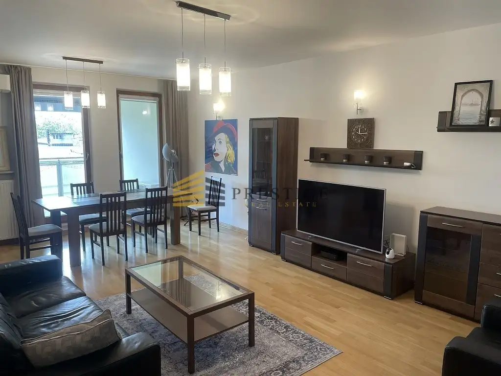 A spacious, 108-square-meter apartment for rent with a parking space in the underground garage, located in a quiet and prestigious part of Mokotów.