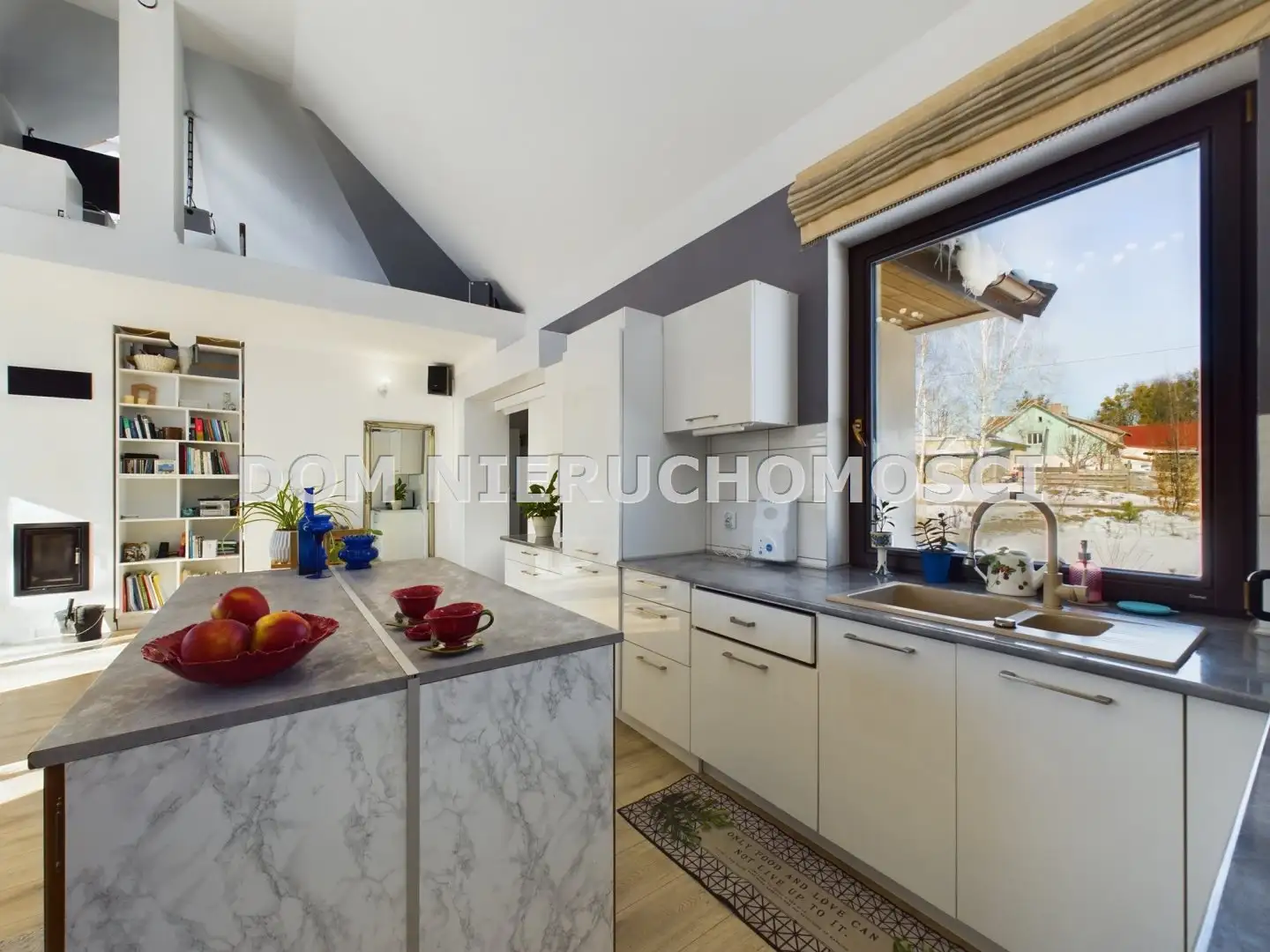 - pokój dzienny z kominkiem połączony ze strefą jadalnianą z wyjściem na taras oraz kuchnią w zabudowie,