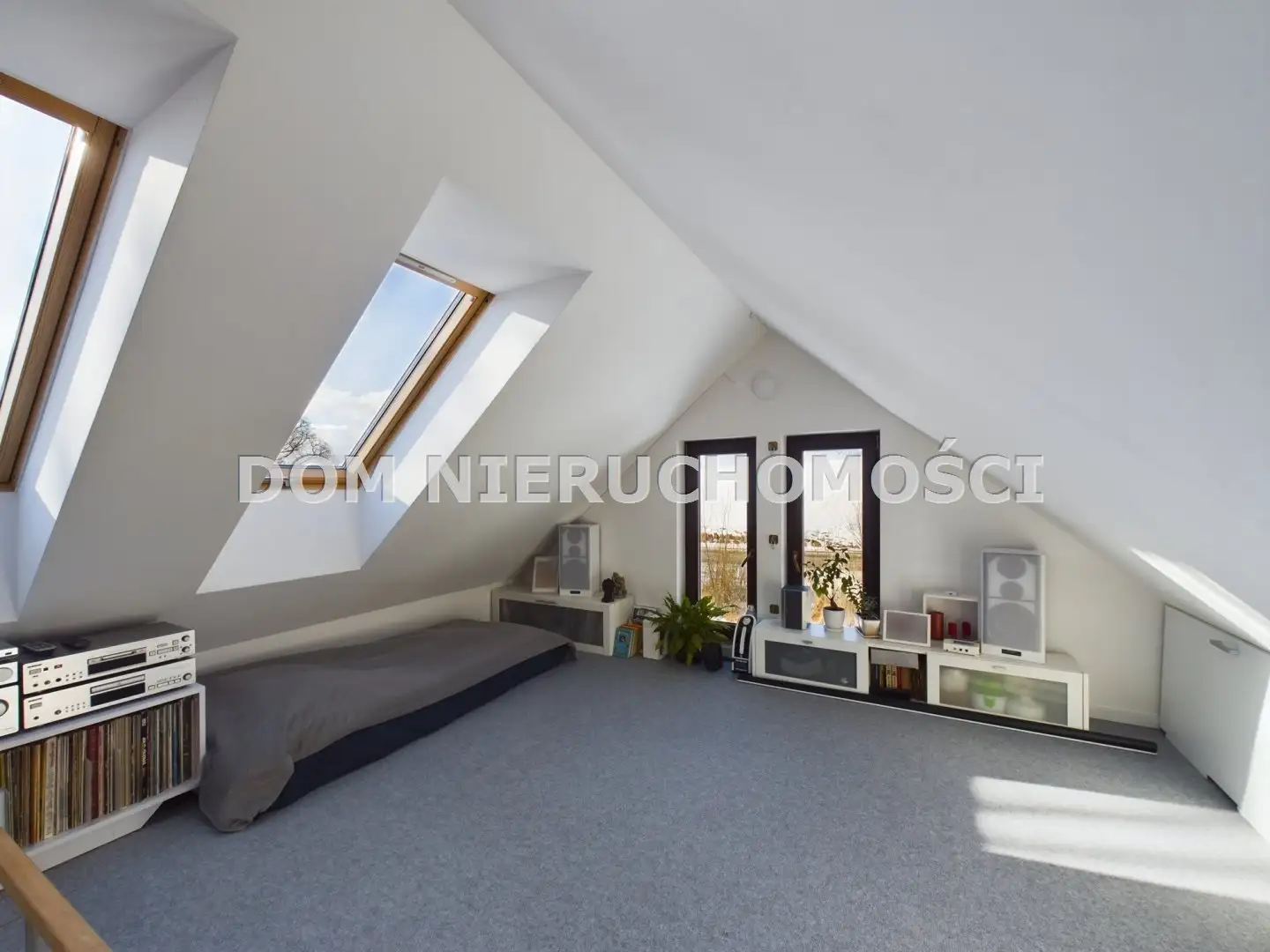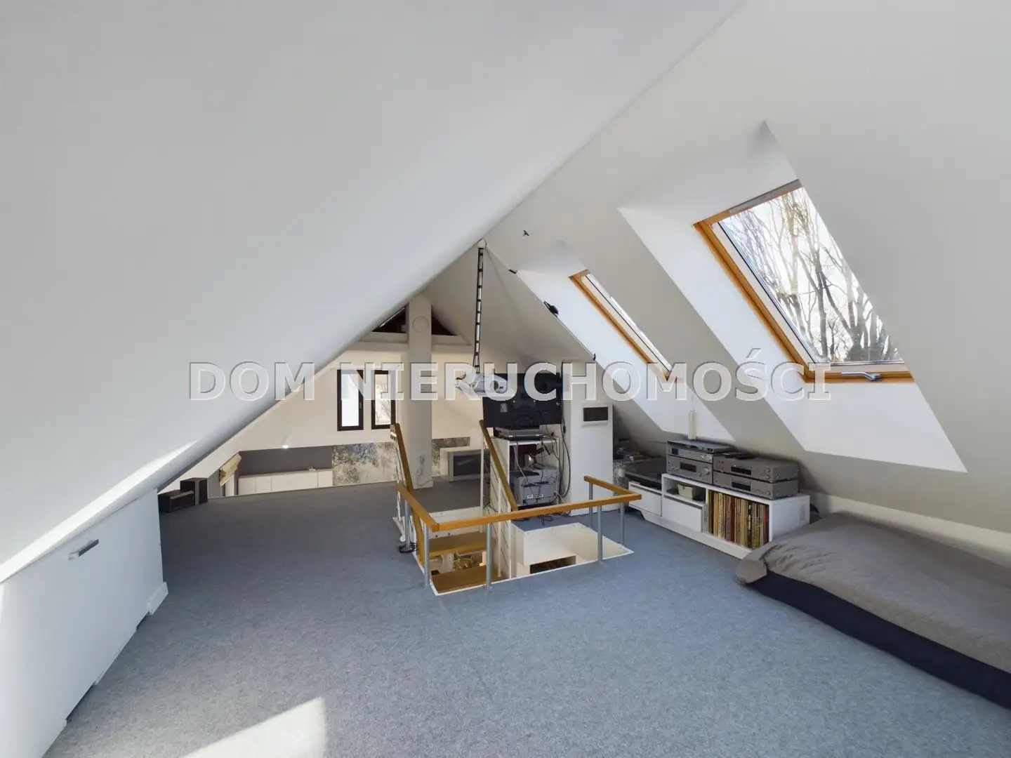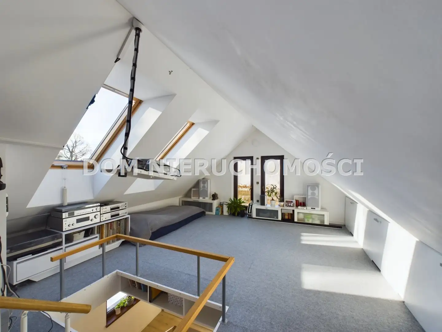 Na antresoli znajduje się otwarta przestrzeń, wykorzystywana w tym momencie jako biuro i pokój kinowy bądź do odpoczynku.
