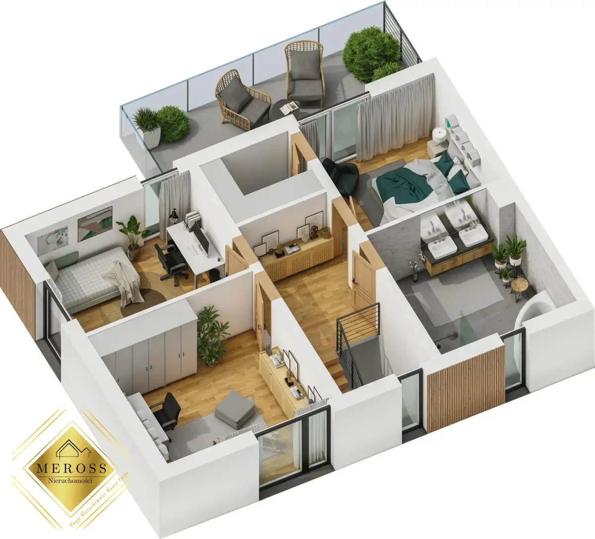 Piętro: trzy sypialnie w tym jedna z garderobą, duża łazienka,