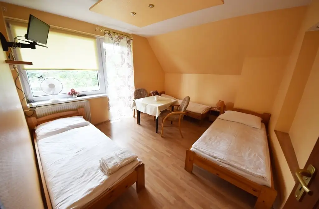 Budynek wybudowano w 1994 roku, został wykonany w technologii tradycyjnej, częściowo docieplony, otynkowany, z dachem krytym dachówką. Posiada instalację elektryczną, wodno-kanalizacyjną, centralnego ogrzewania, grzejniki, stolarkę okienną i drzwiową. Łazienki i toalety wykafelkowane z armaturą łazienkową. Pokoje w całości wyposażone w umeblowanie.