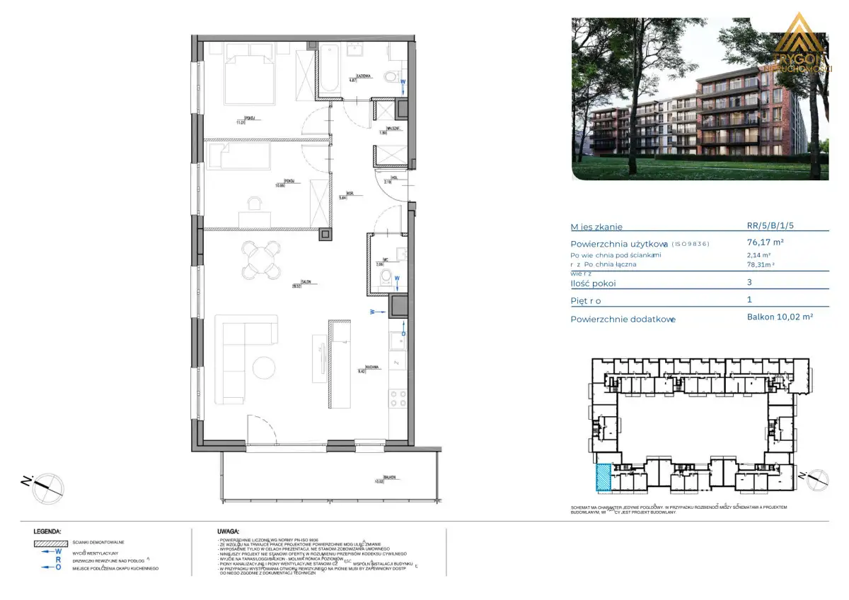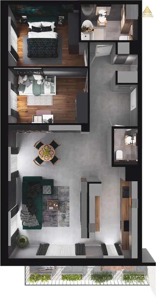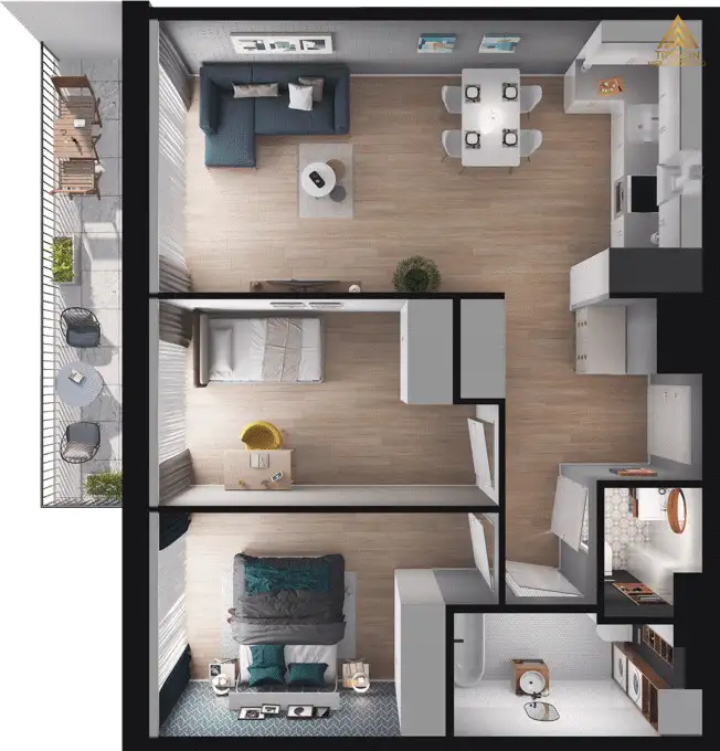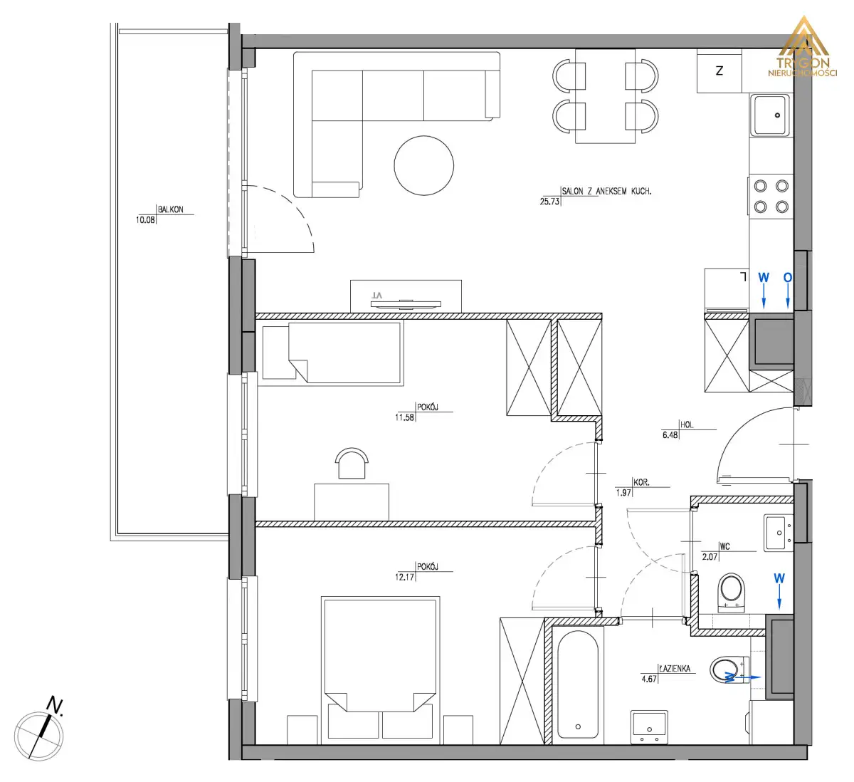 Apartament65,25 m² optymalnie zaplanowana powierzchnia, z małym korytarzem: