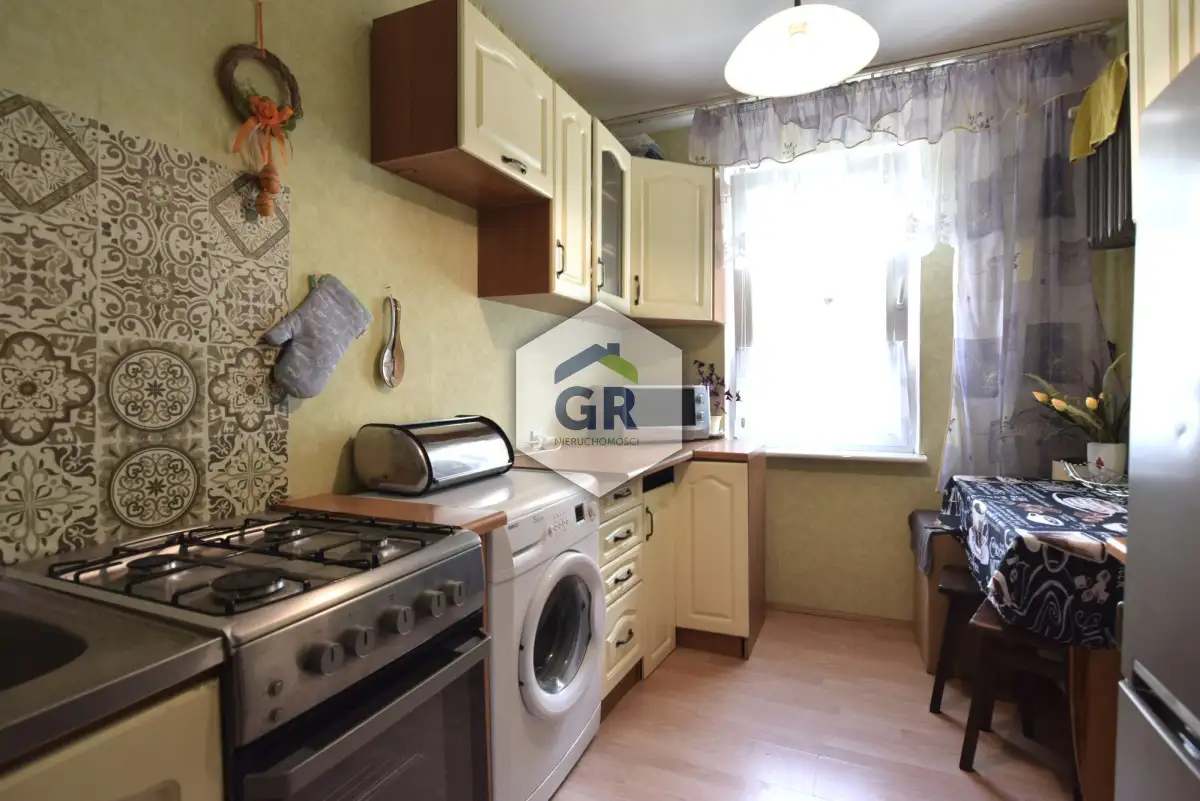 Mieszkanie jest bardzo dobrze rozplanowane. Na stosunkowo niewielkiej powierzchni znajdują się ustawne pokoje i oddzielna, duża kuchnia. Istnieje możliwość wyburzenia ścianki pomiędzy pokojem a kuchnią i utworzyć, wraz z częścią przedpokoju ponad 20 metrowe pomieszczenie. Mieszkania może wymagać odświeżenia lub remontu. Mieszkanie posiada instalację alarmową. Ogrzewanie i ciepła woda miejskie. Do mieszkania przynależy ponad 4 metrowa piwnica.