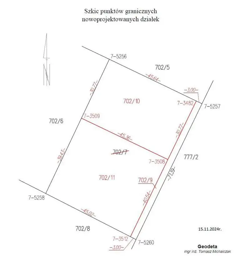 Wymiary: 45.02 m x 40.54 m.