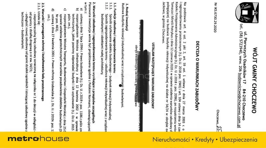 - Wydane warunki zabudowy na dom całoroczny