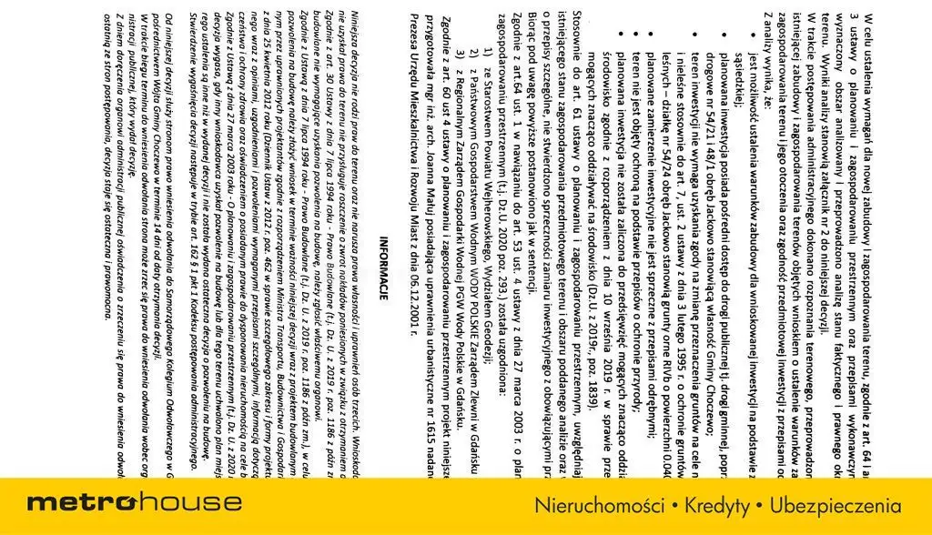 Pomimo, iż Doradcy Metrohouse przykładają szczególną staranność do rzetelnego prezentowania informacji o nieruchomości, nie zawsze jest możliwa weryfikacja wszystkich danych przekazanych od osób trzecich. Niniejsza prezentacja oferty nie jest ofertą w rozumieniu Kodeksu Cywilnego i ma charakter wyłącznie informacyjny.