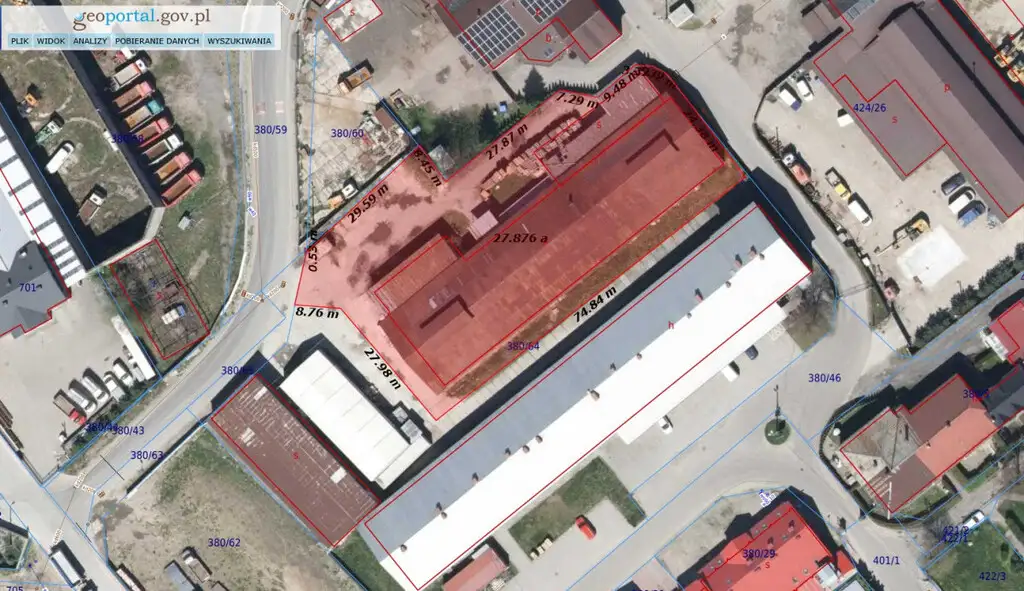 Zarząd Powiatu Limanowskiego z siedzibą przy ul. Józefa Marka 9 w Limanowej ogłasza I przetarg ustny nieograniczony na wynajem części działki ewidencyjnej nr 380/64 obręb ewidencyjny nr 3 miasta Limanowa o powierzchni 27,88 a, objętej księgą wieczystą NS1L/00041721/6, zabudowanej budynkiem, w skład którego wchodzi hala produkcyjna, dwie hale magazynowe, sanitariaty, kotłownia oraz pomieszczenia socjalno– biurowe o łącznej powierzchni 949,90 m².