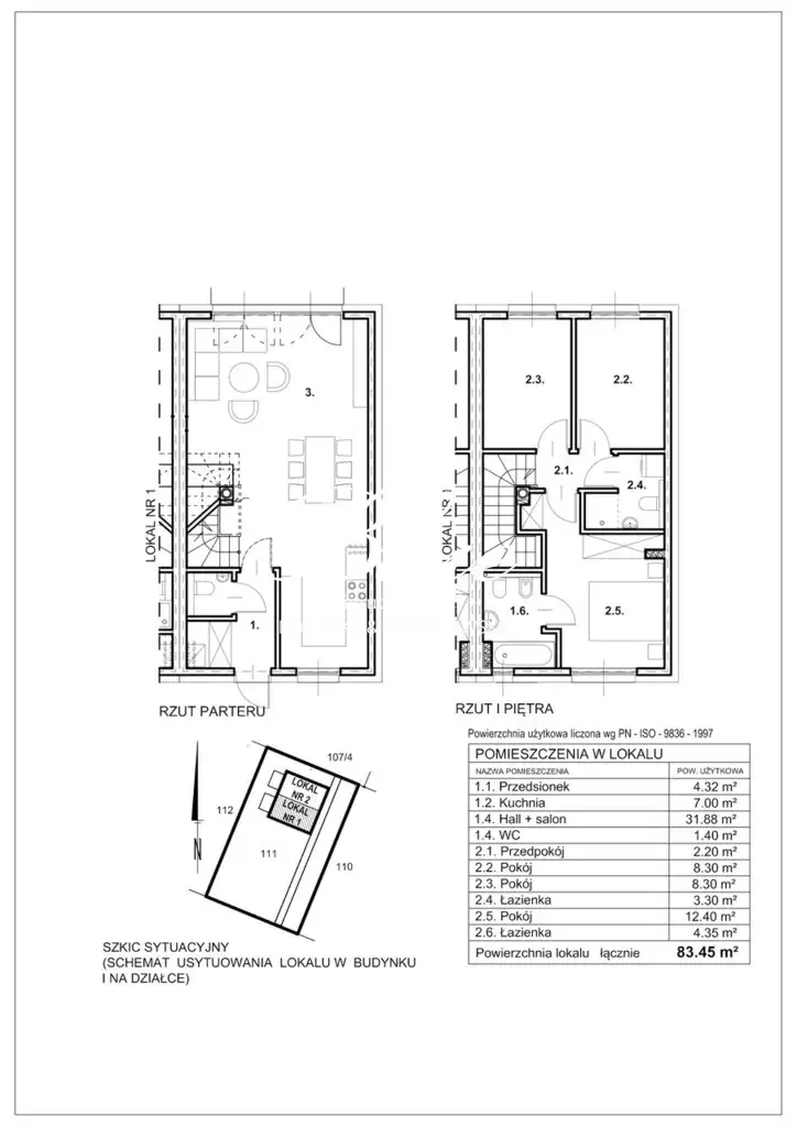Powierzchnia użytkowa: 83,5 m² Liczba pokoi: 5 (w tym salon z aneksem + gabinet/ pokój na dole + 3 sypialnie na piętrze) Typ zabudowy: bliźniacza Stan: wybudowany, gotowy do odbioru Działka: wydzielona część z dostępem do dwóch miejsc postojowych Rok budowy: 2024 Ogrzewanie: gazowe, podłogowe z indywidualnym sterowaniem Technologia: nowoczesna, energooszczędna