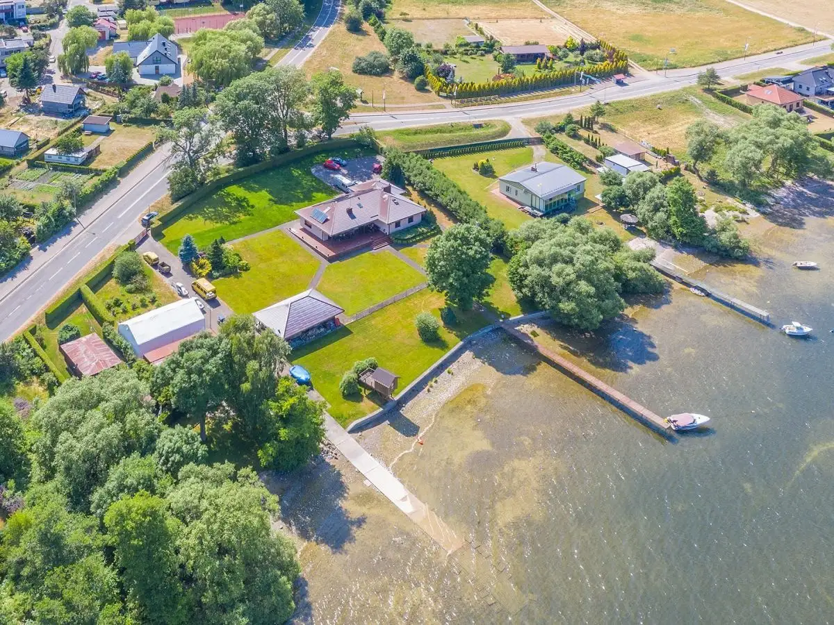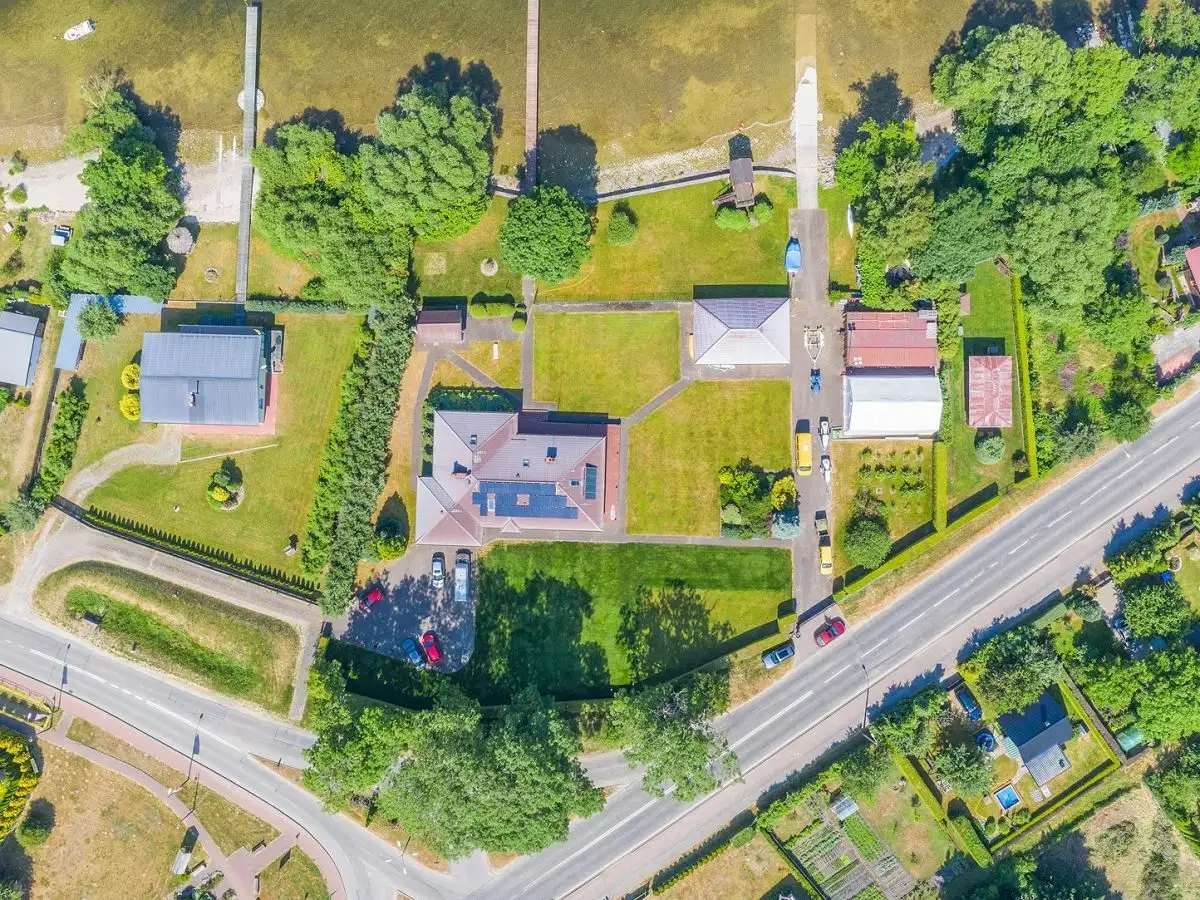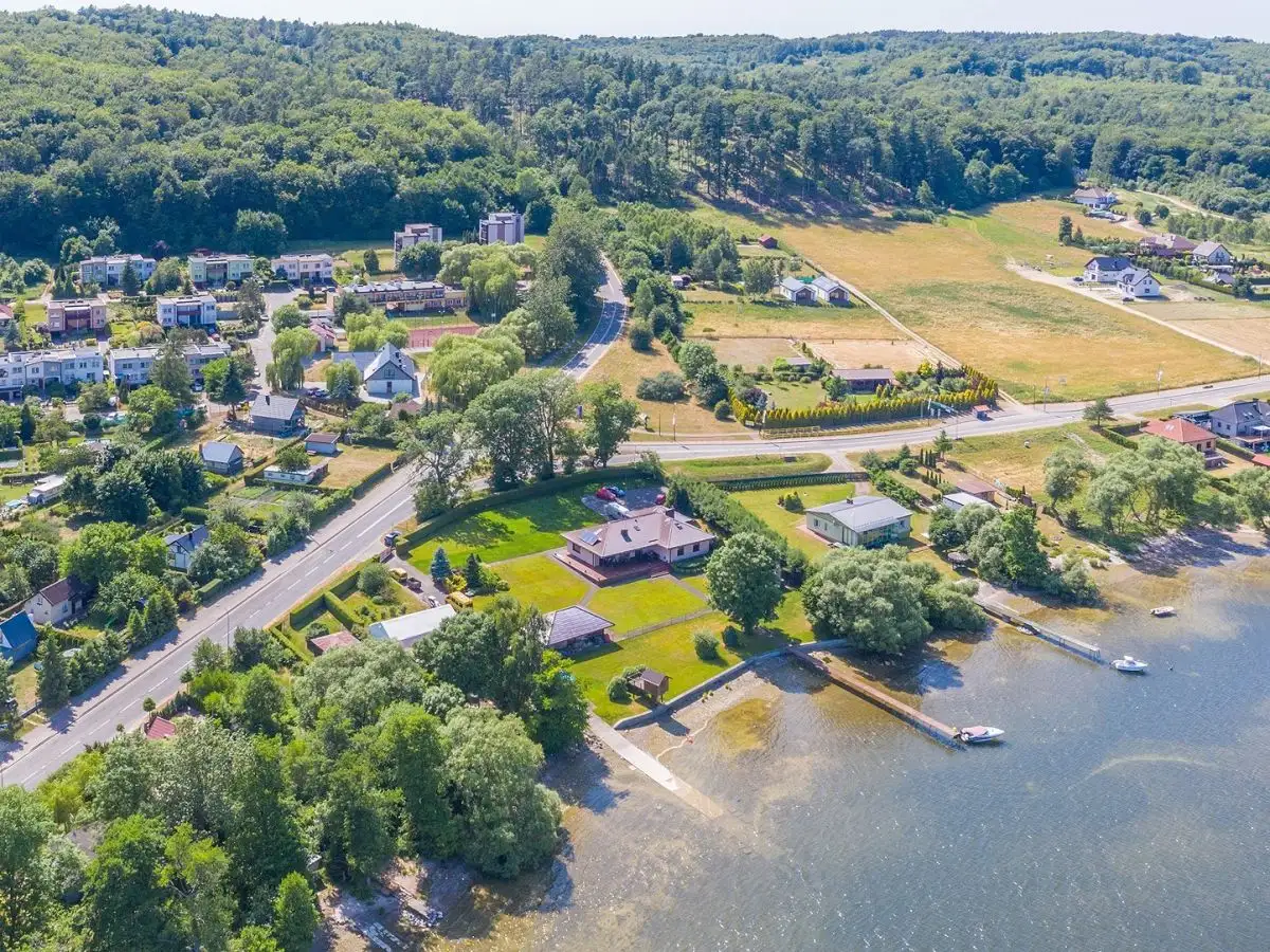 Działka o powierzchni 4894 m², na której został posadowiony dom parterowy z poddaszem użytkowym o powierzchni całkowitej 305 m², użytkowej 205 m², mająca bezpośredni DOSTĘP DO JEZIORA ŻARNOWIECKIEGO, w Nadolu, gminie Gniewino w powiecie wejherowskim. Do Wejherowa ok. 20 km, do Dębek 21 km. Budynek zbudowany z porothermu, ocieplony styropianem 12cm, otynkowany. Dach pokryty blacho-dachówką, baterie słoneczne i panele fotowoltaiczne o dużej mocy do ogrzewania wody. Garaż dwu-stanowiskowy w bryle budynku, okna drewniane mahoń z firmy Bertrand.