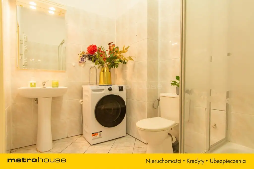 Łazienka wyposażona jest w kabinę prysznicową oraz pralkę.