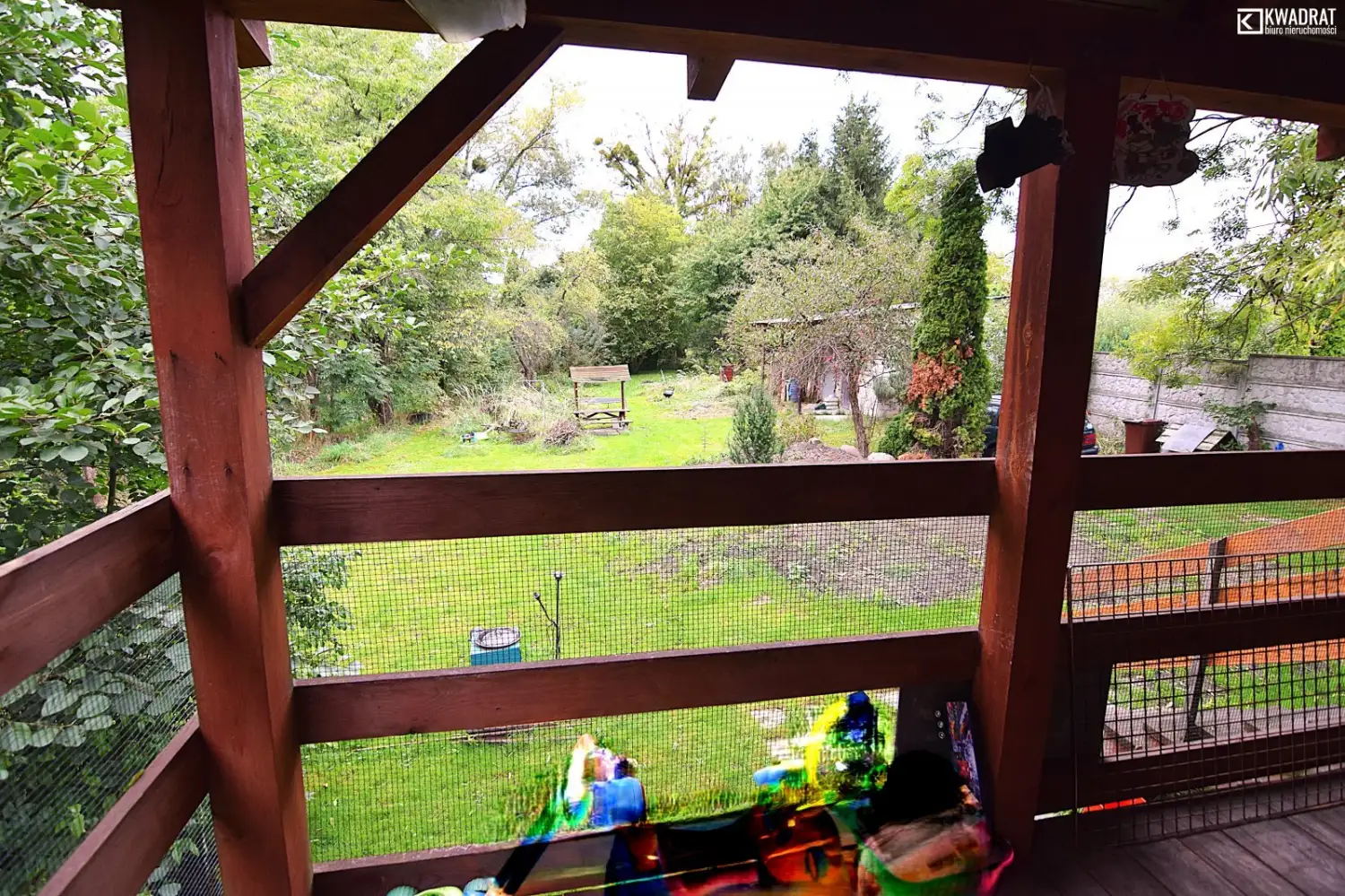 Z poziomu parteru mamy dwa wejścia do domu, z tyłu mamy wyjście na duży zadaszony taras z widokiem na zieleń.