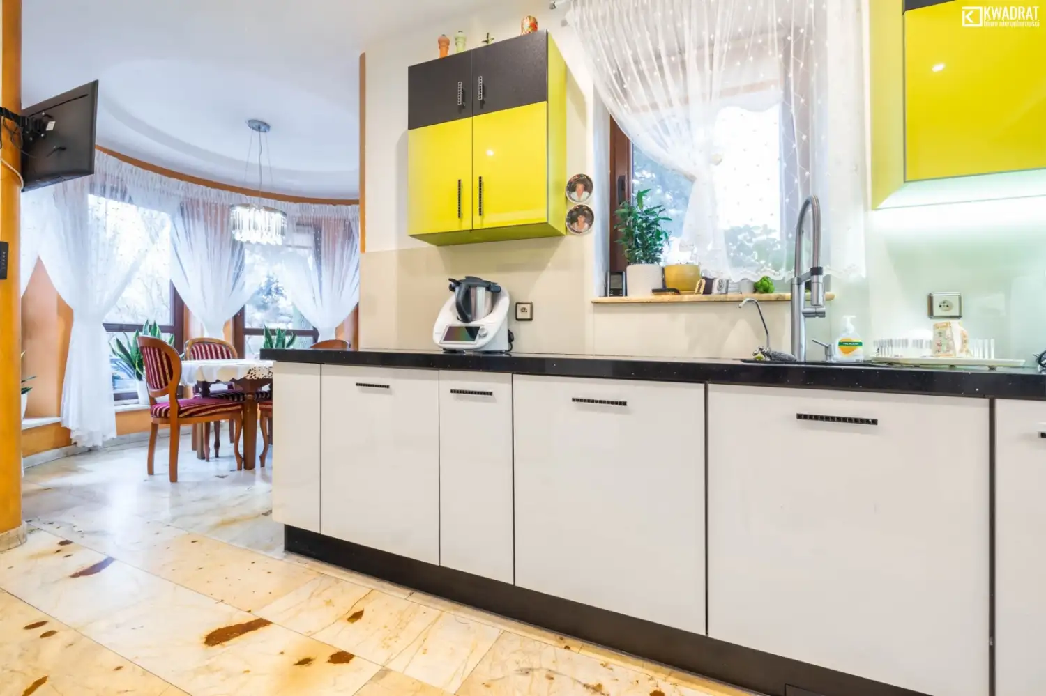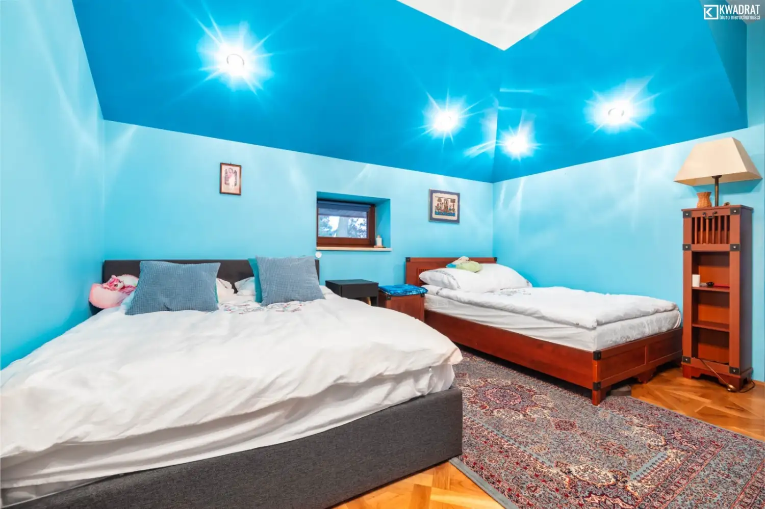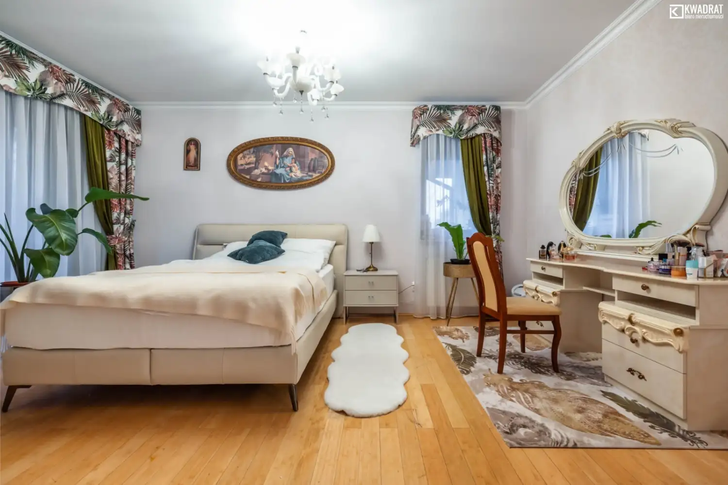 Funkcjonalny układ pomieszczeń z wydzieloną strefą dzienną oraz nocną pozwala domownikom komfortowo spędzać wspólny czas. Duża ilość przeszkleń nadaje wnętrzu jasnego, słonecznego klimatu. Dodatkowym atutem jest sposób posadowienia domu otoczonego pięknym zadrzewieniem. Wychodząc na duże podwórze, bądź spędzając czas na jednym z dwóch tarasów, można zapomnieć o zgiełku miasta. CISZA SPOKÓJ ORAZ MUZYKA NATURY TO DOMENA tej niesamowitej nieruchomości.