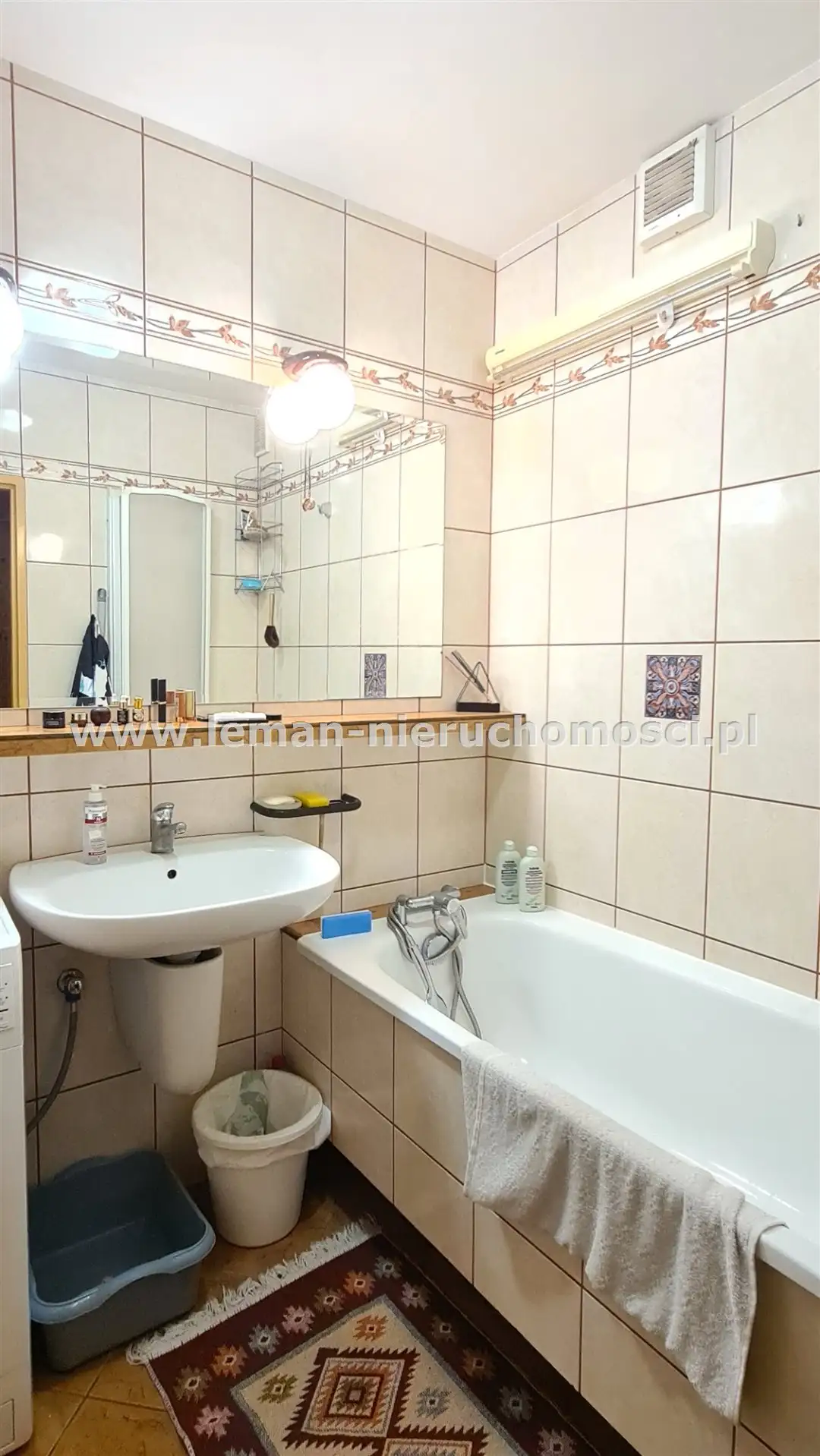 łazienkę z wanną, pralką i umywalką