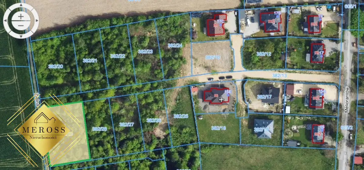 W pobliżu znajduje się zabudowa jednorodzinna, pola, lasy.