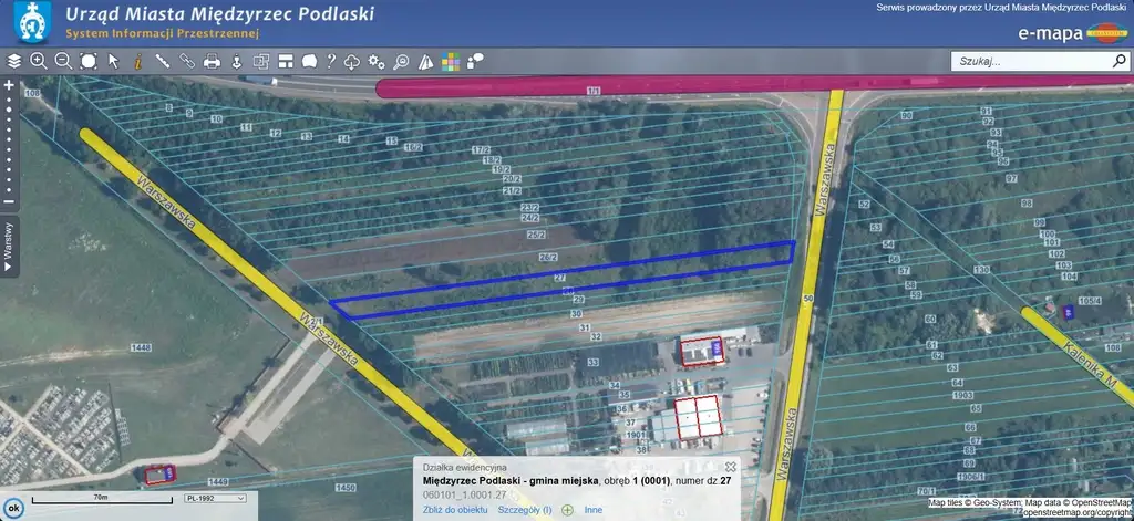 ogłasza ustny przetarg nieograniczony na sprzedaż nieruchomości niezabudowanej oznaczonej w ewidencji gruntów jako działka nr 27 i nr 28 o łącznej pow. 0,3372 ha, położonej w obrębie 1 m. Międzyrzec Podlaski, będącej własnością Gminy Miejskiej Międzyrzec Podlaski, dla której Sąd Rejonowy w Radzyniu Podlaskim prowadzi księgę wieczystą KW LU1R/00032203/2. Zgodnie z miejscowym planem zagospodarowania przestrzennego przedmiotowa nieruchomość leży na terenie wyznaczonym pod „Obszar Usług Centralnych Komercyjnych” (Obszar UC) z podstawowym przeznaczeniem gruntów pod: banki, instytucje ubezpieczeń, dyrekcje i zarządy jednostek gospodarczych, obiekty jednostek projektowych, obiekty handlu detalicznego i hurtowego, obiekty gastronomii, rzemiosła, obiekty turystyki i usługi łączności (symbol planu A 75 UC). Dostępna infrastruktura techniczna: energia elektryczna, wodociąg, gazociąg (w odległości ok. 60 m.). Nad nieruchomością przebiegają napowietrzne linie energetyczne średniego napięcia. Na nabywcę nieruchomości wyłonionego w drodze przetargu zostanie nałożone zobowiązanie do złożenia podczas zawarcia umowy sprzedaży – aktu notarialnego, oświadczenie w celu zapewnienia eksploatacji, konserwacji i remontów istniejących urządzeń sieci uzbrojenia technicznego terenu – linii energetycznych średniego napięcia nieodpłatnej służebności przesyłu zgodnie z art. 3051 ustawy z dnia 23 kwietnia 1964 r. Kodeks Cywilny w pasie o szerokości 10 m usytuowanym symetrycznie do przebiegających nad nieruchomością napowietrznych linii energetycznych średniego napięcia na rzecz odpowiednio PGE Dystrybucja S.A. Oddział Lublin i PGE Energetyka Kolejowa S.A. Oddział