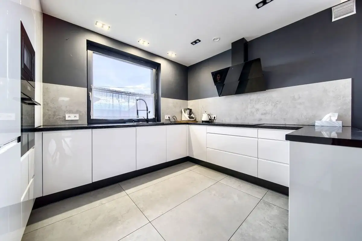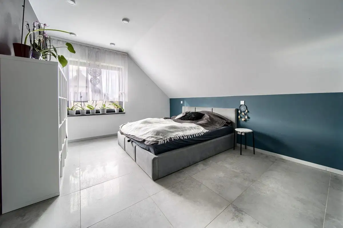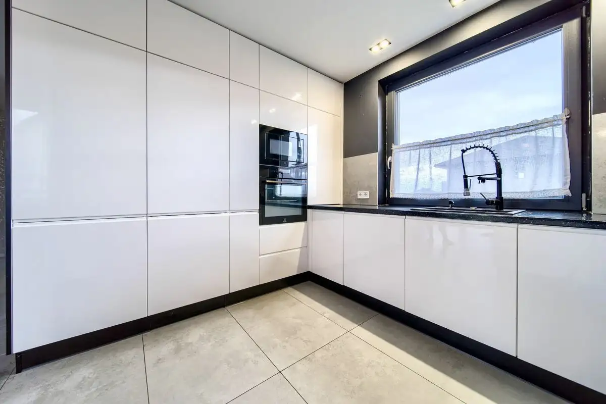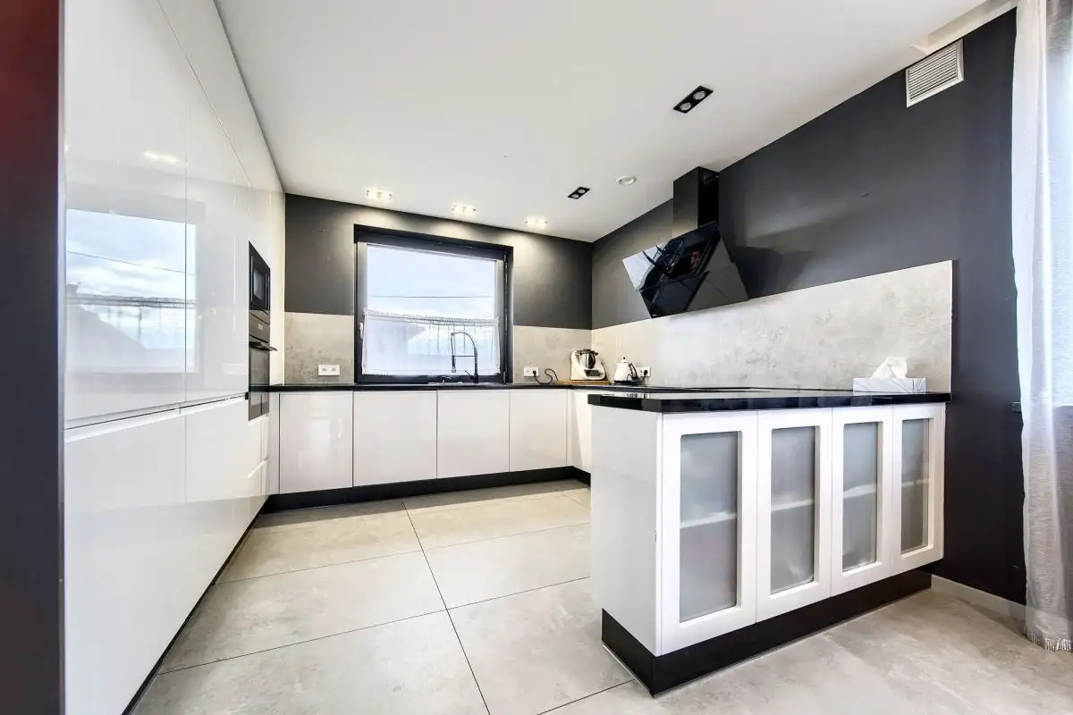 Detale zewnętrzne domu, takie jak duże narożne okna i barwne płaszczyzny, nadają mu nowoczesny i unikalny charakter. Dom jest w pełni wyposażony w meble i sprzęt AGD, co pozwala na natychmiastowe wprowadzenie się i cieszenie się nowym domem bez żadnych dodatkowych nakładów.