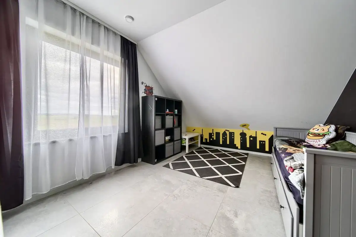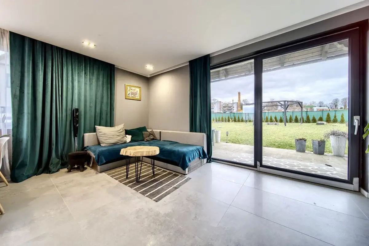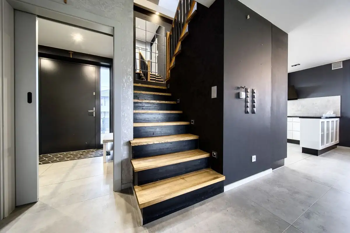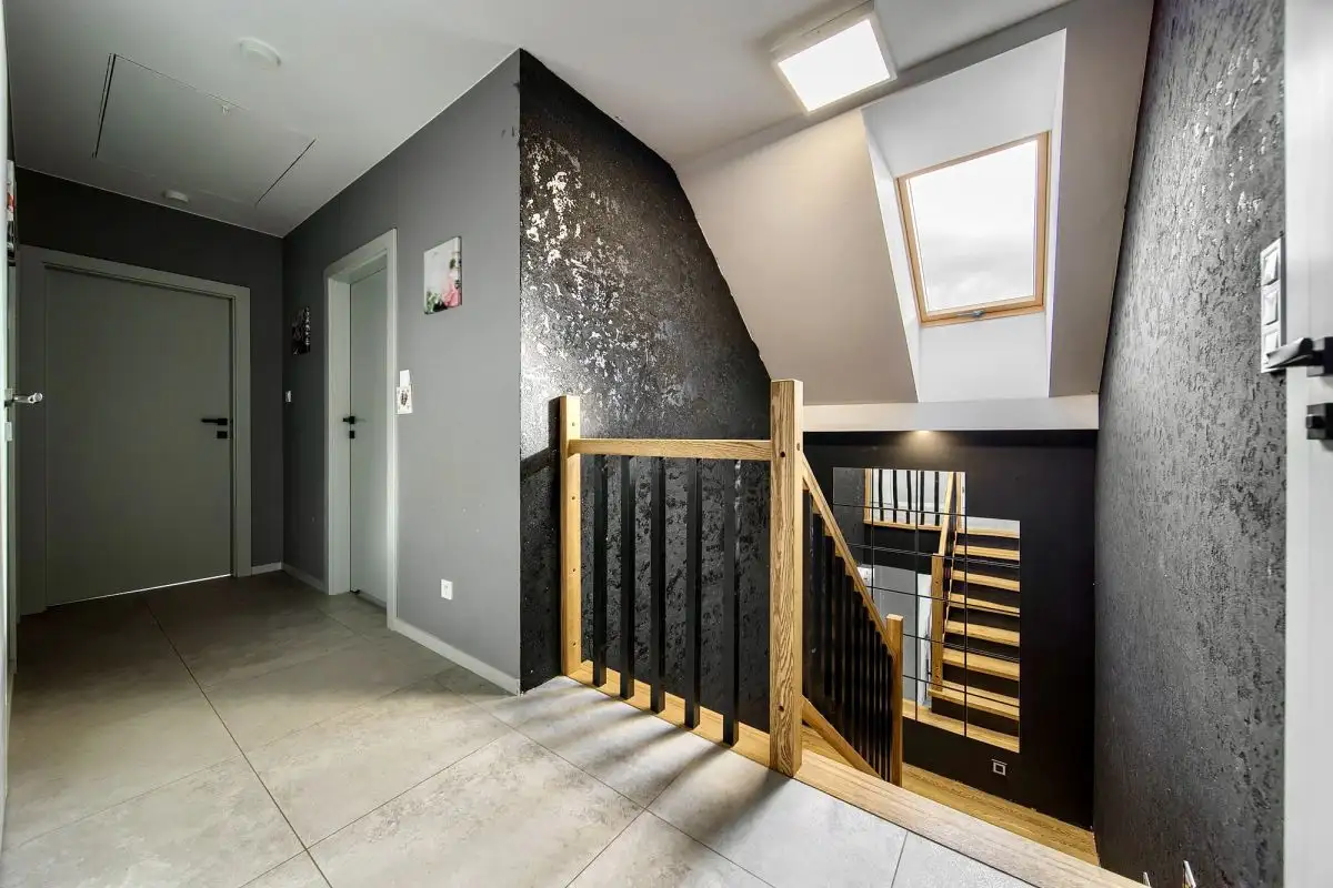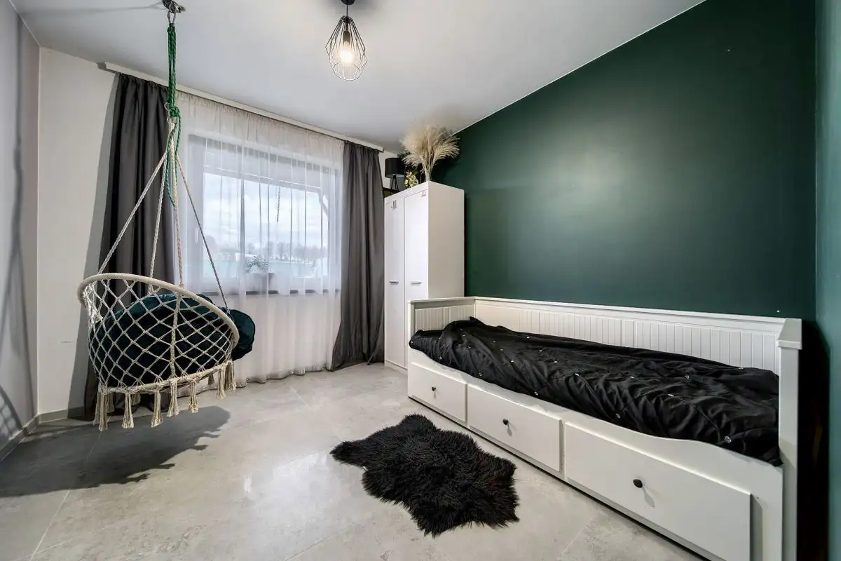 Detale zewnętrzne domu, takie jak duże narożne okna i barwne płaszczyzny, nadają mu nowoczesny i unikalny charakter. Dom jest w pełni wyposażony w meble i sprzęt AGD, co pozwala na natychmiastowe wprowadzenie się i cieszenie się nowym domem bez żadnych dodatkowych nakładów.
