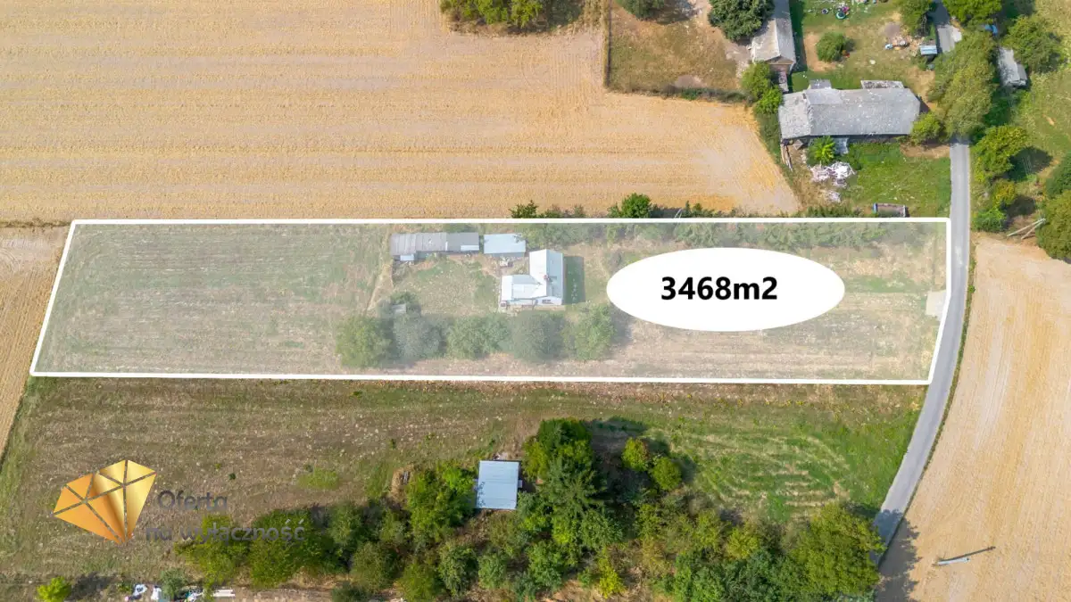 Nieruchomość gruntowa zabudowana murowanym domem o pow. ok. 50m² z końca lat 70-ątych, podpiwniczony, na działce o pow. 3468m².