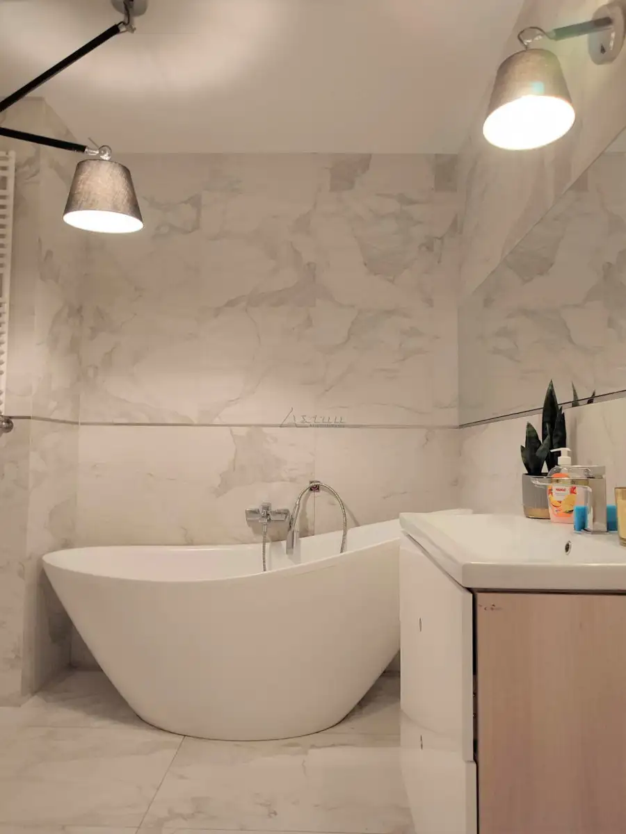 - WC 1,60m przerobiona na łazienkę z kabiną prysznicową ok 2,40m