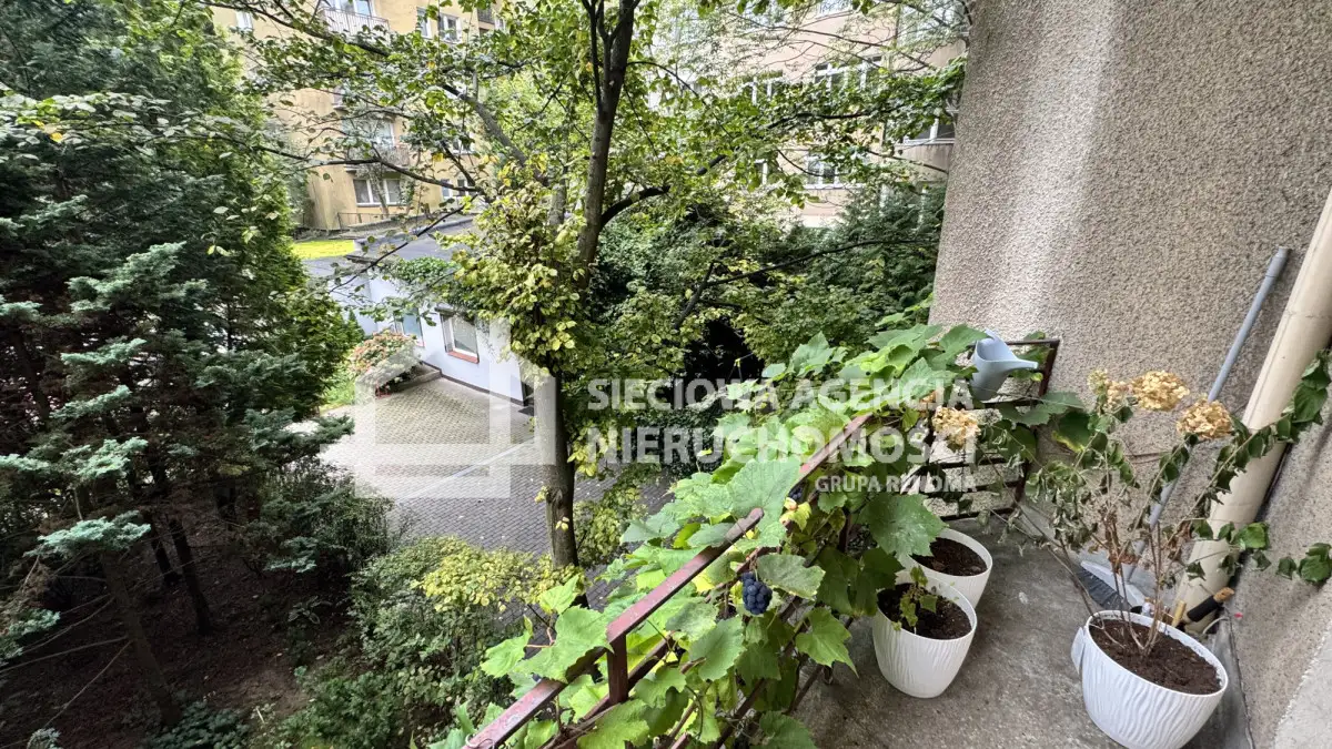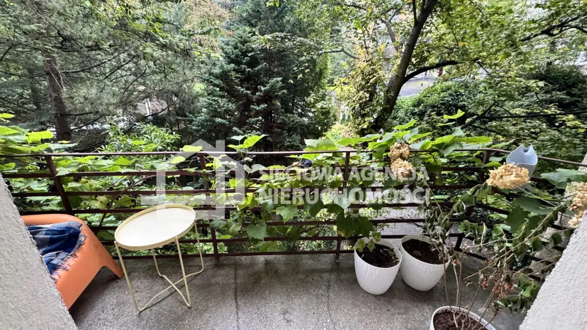 Z kuchni wyjście na balkon a z niego widok na zieleń.