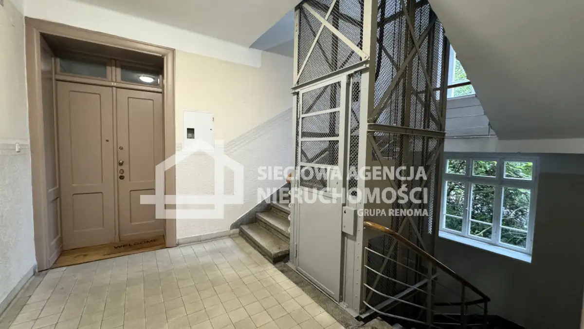 Lokal znajduję się na 1-piętrze w zabytkowej dobrze utrzymanej kamienicy z windą z 1931r.