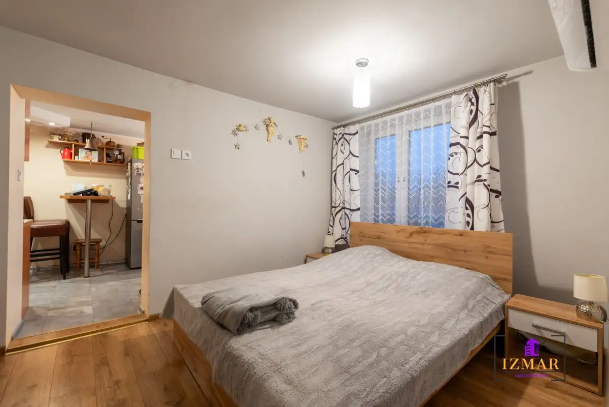 Ściany pokryte gładzią i odmalowane, okna PCV, zamontowano klimatyzację.